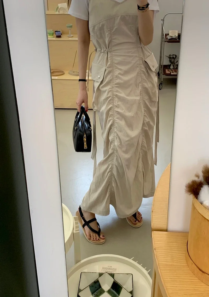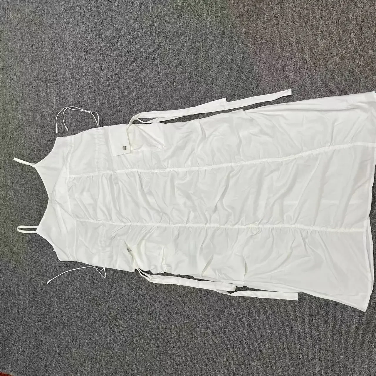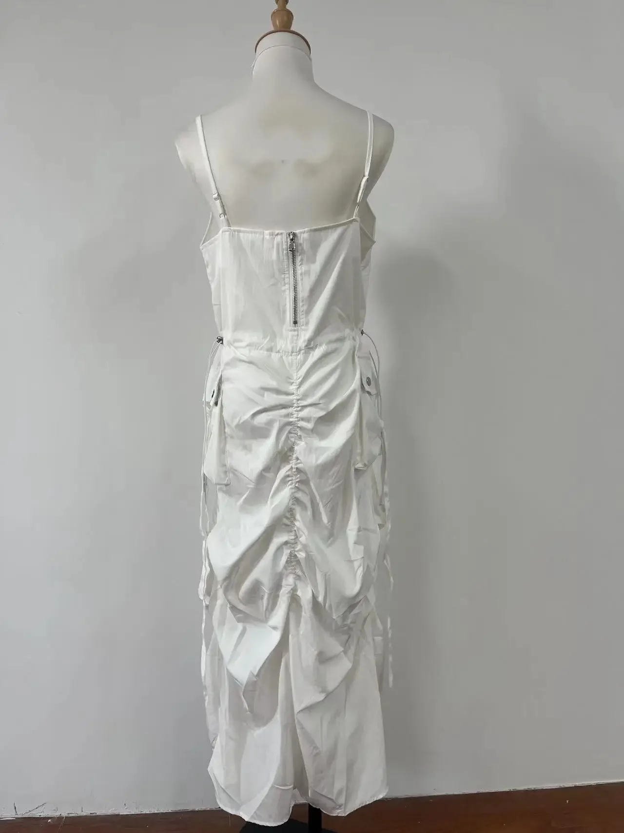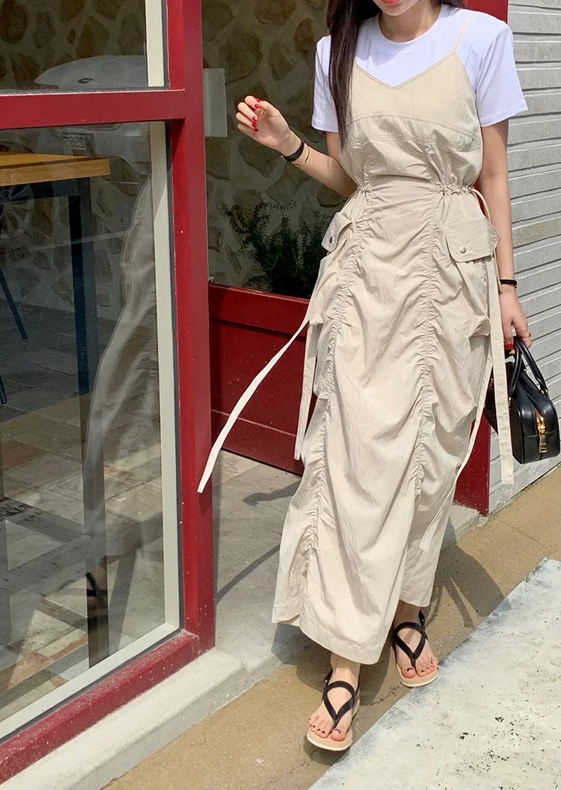 Lunivop Korean Fashion New Summer Dress Women Pleated Design Large Pockets Waisted Midi Dress Female Sleeveless Solid Black Long Dresses