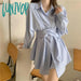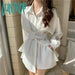 Lunivop Korean One Piece White Shirt Dress Women Office Ladies Elegant Tunic Blouse Dresses Irregular Long Sleeve High Waist