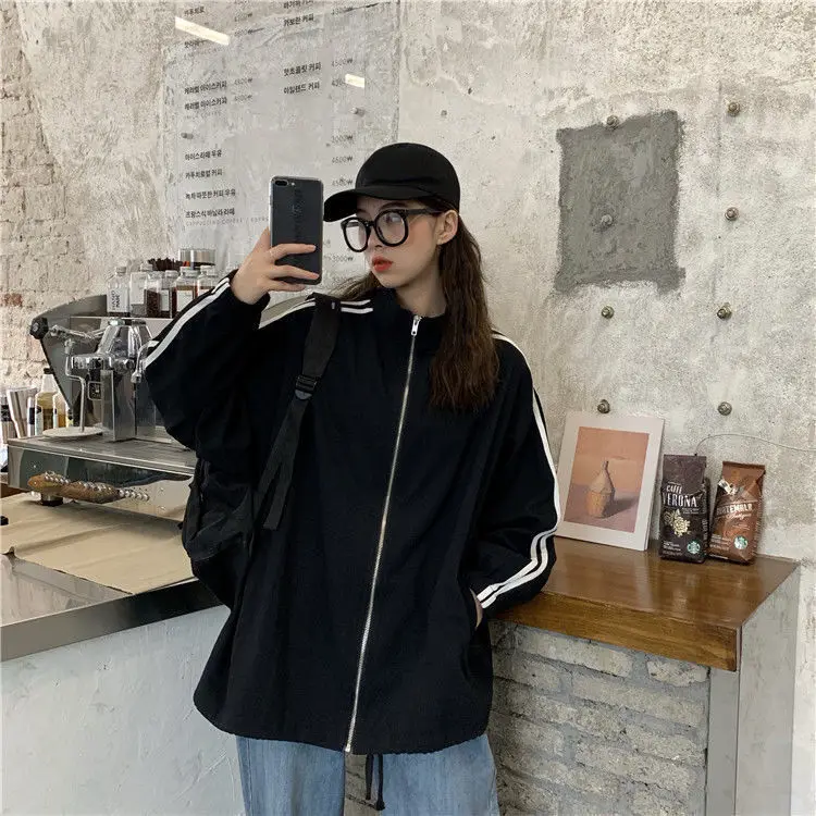Lunivop Korean Streetwear Jacket Women Oversized Track Thin Summer Jackets Windbreaker Harajuku Fashion College Couple Outdoor