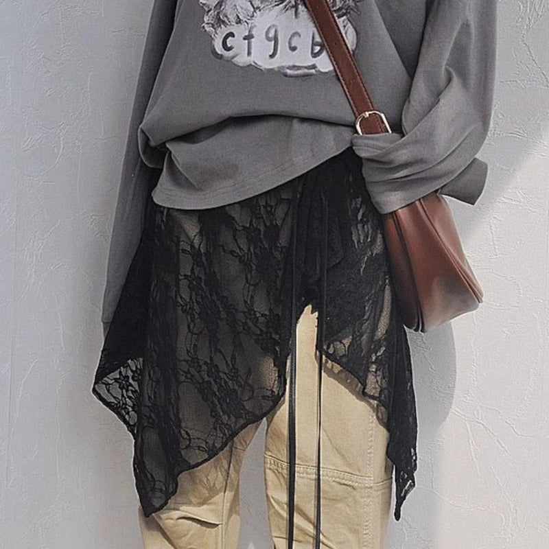 Lunivop Korean Style Irregular Skirt Women Sweet Lace Up Black Short Skirts Elegant Fashion Solid Streetwear Fart Curtain Skirt
