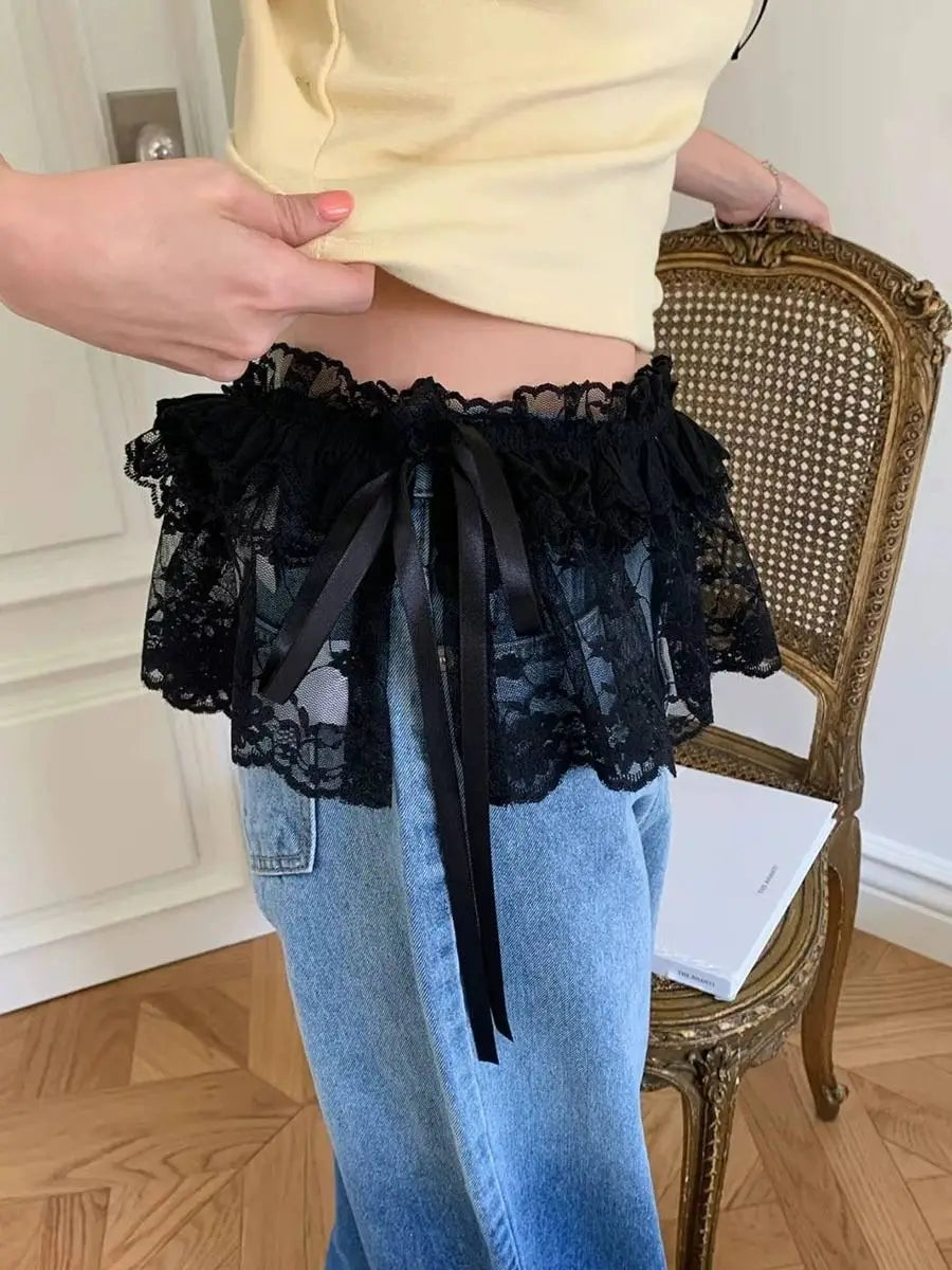 Lunivop Korean Style Lace Mini Skirts Women Elegant Sweet Lolita Short Skirts Cute High Waist Y2k Streetwear Black Ruffle Skirt