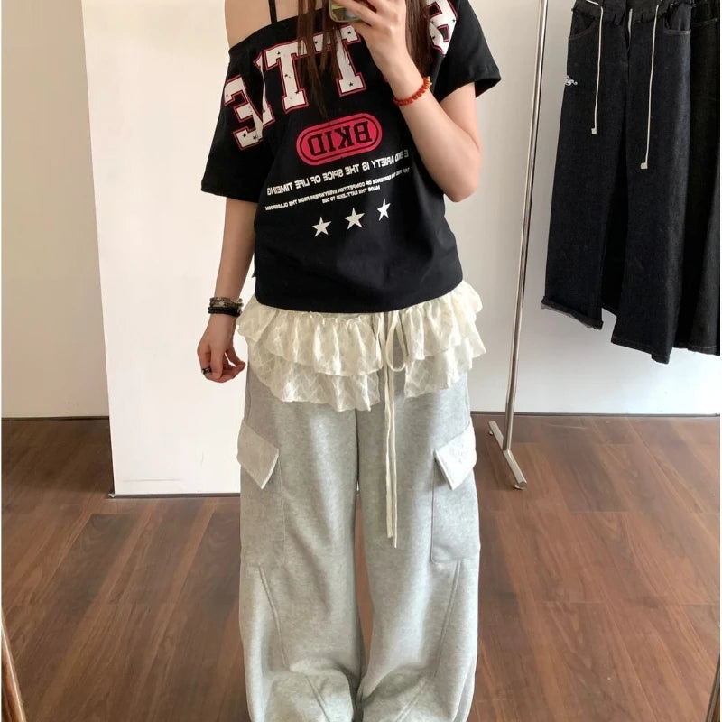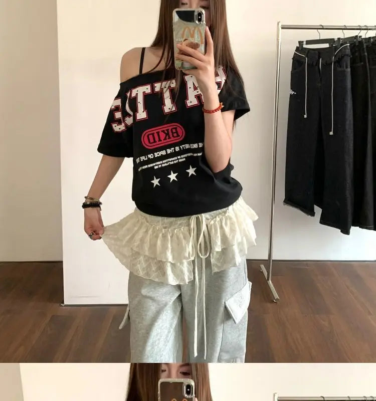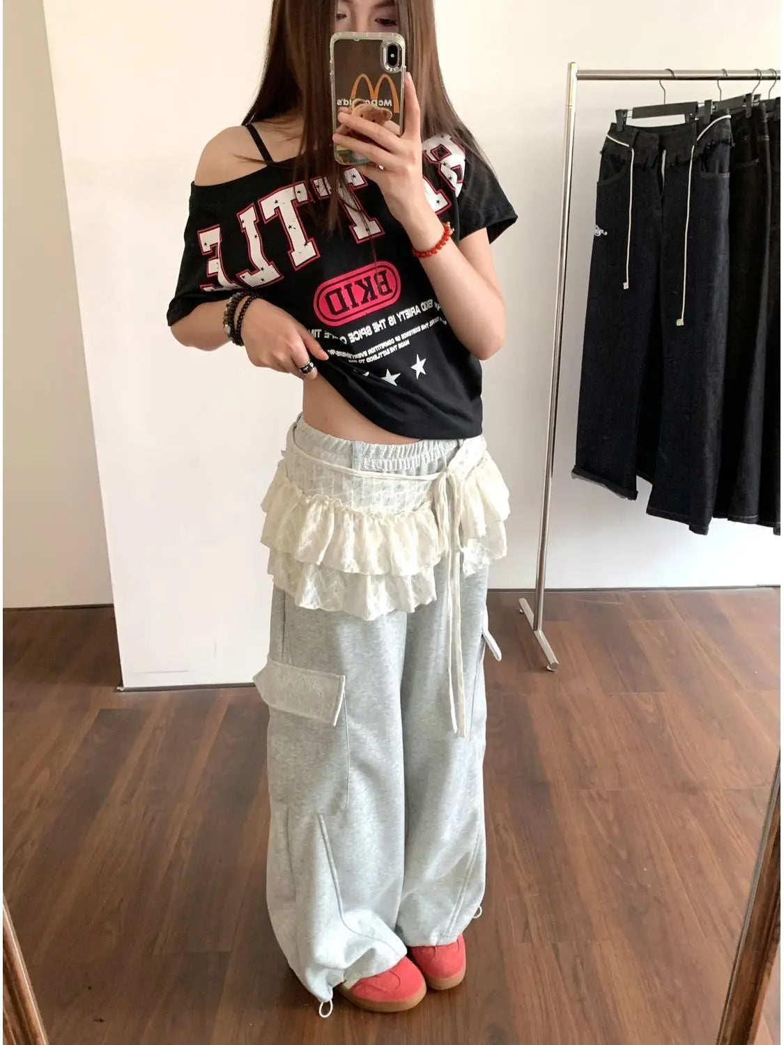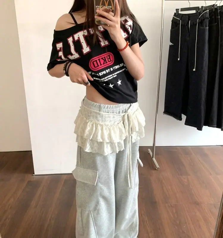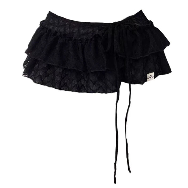 Lunivop Korean Style Mini Skirts Women Harajuku Sweet Lace Up Short Skirts Cute High Waist Y2k Streetwear Black Ruffle Skirt