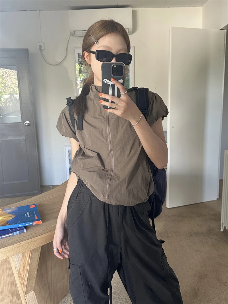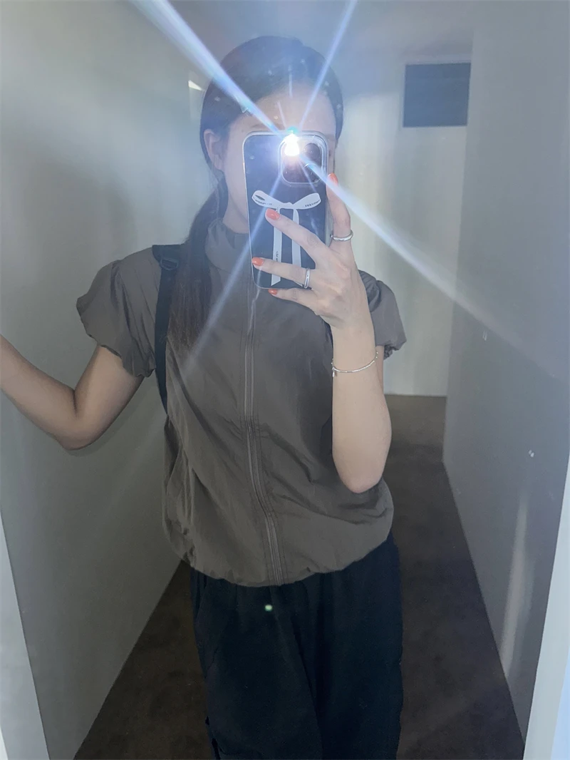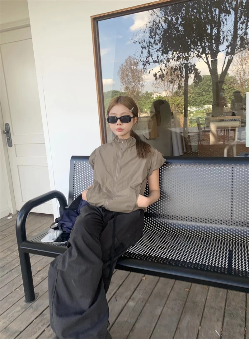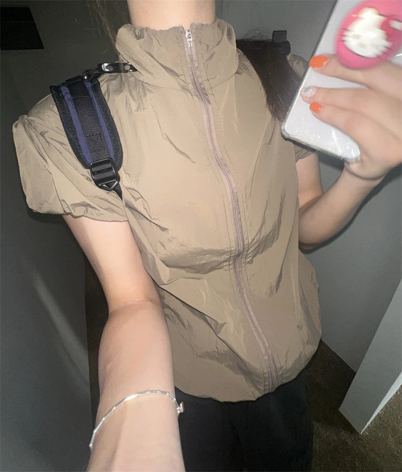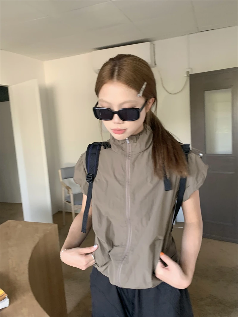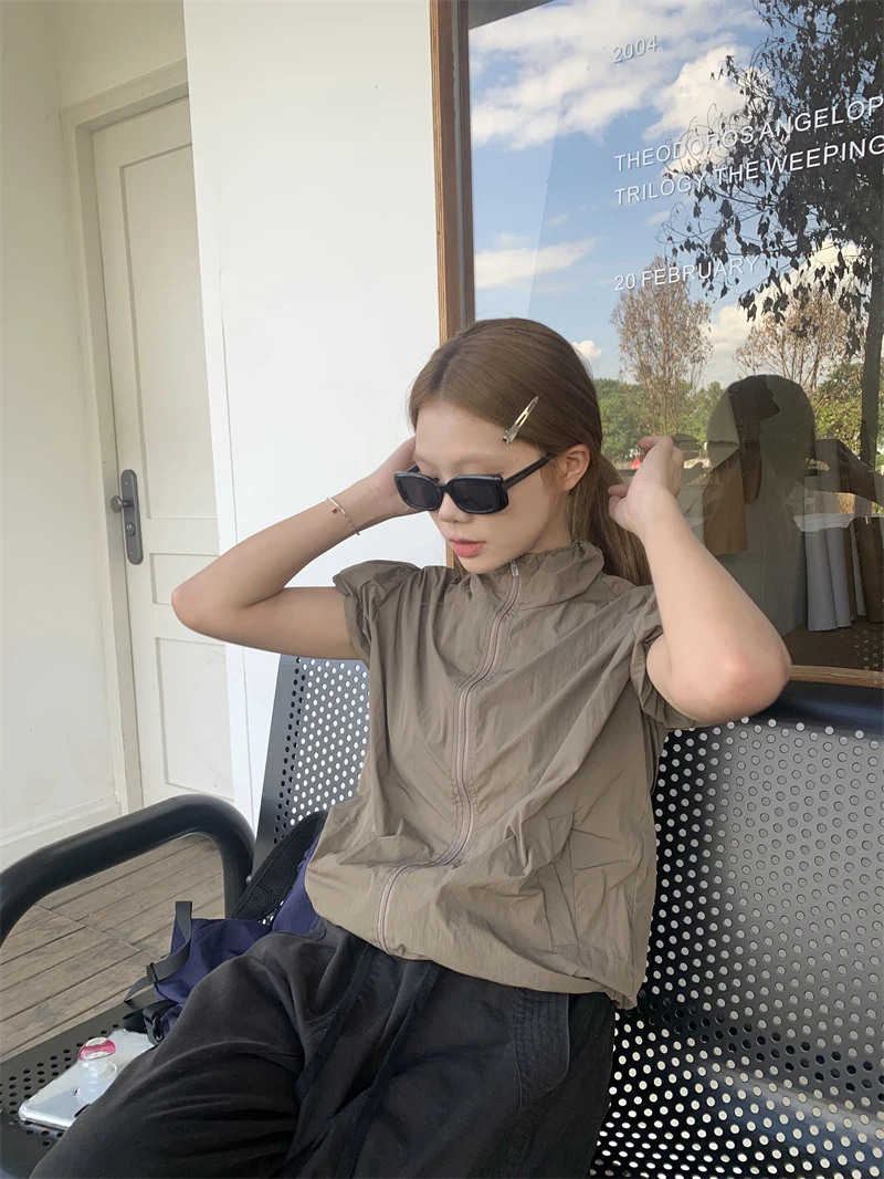 Lunivop Korean style Sun Protection Solid Thin Chic Jackets Summer Vintage Slim Stand Neck Coat Casual Zipper Y2k Short Sleeve Coats