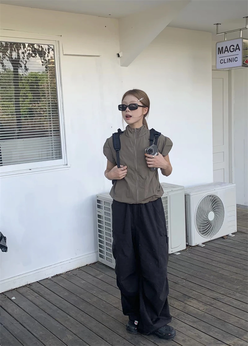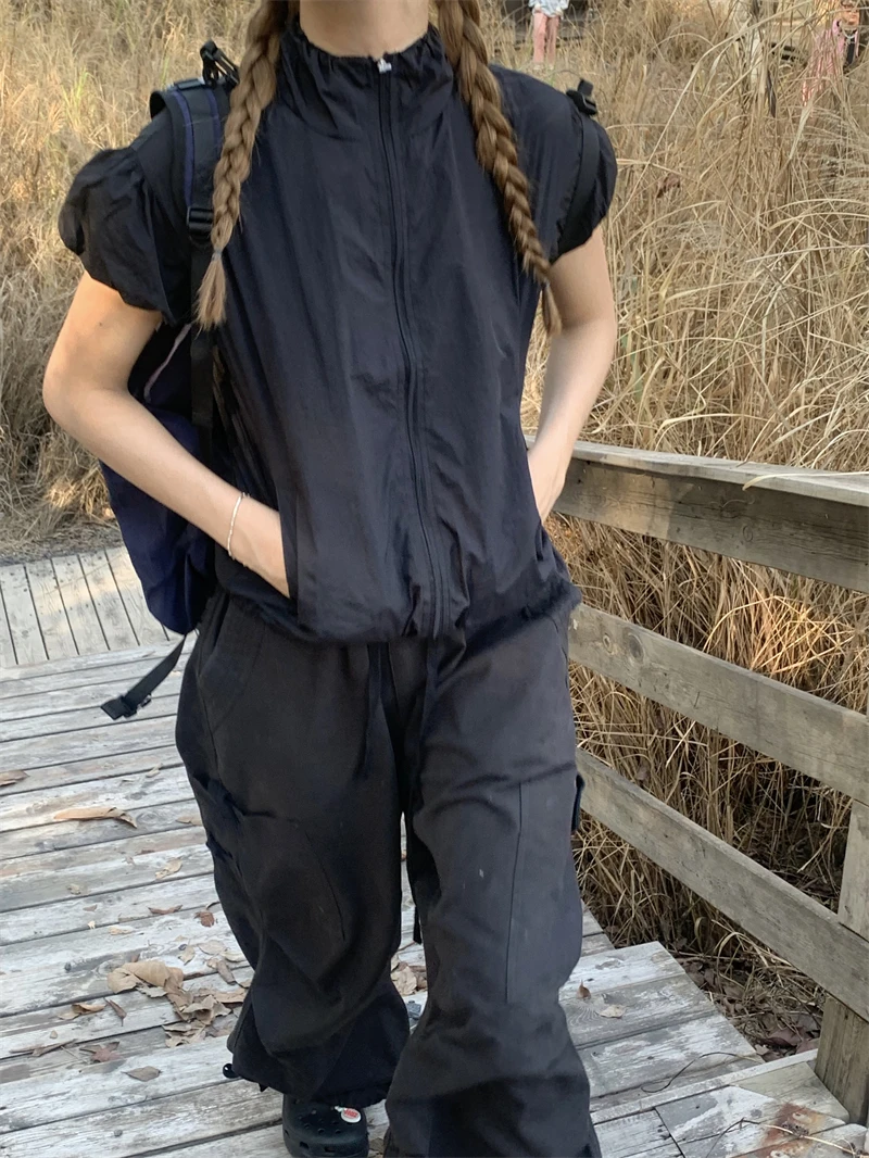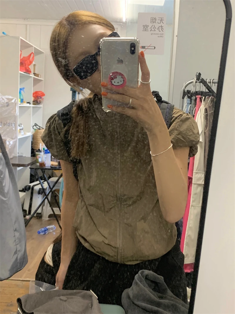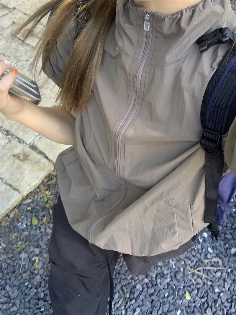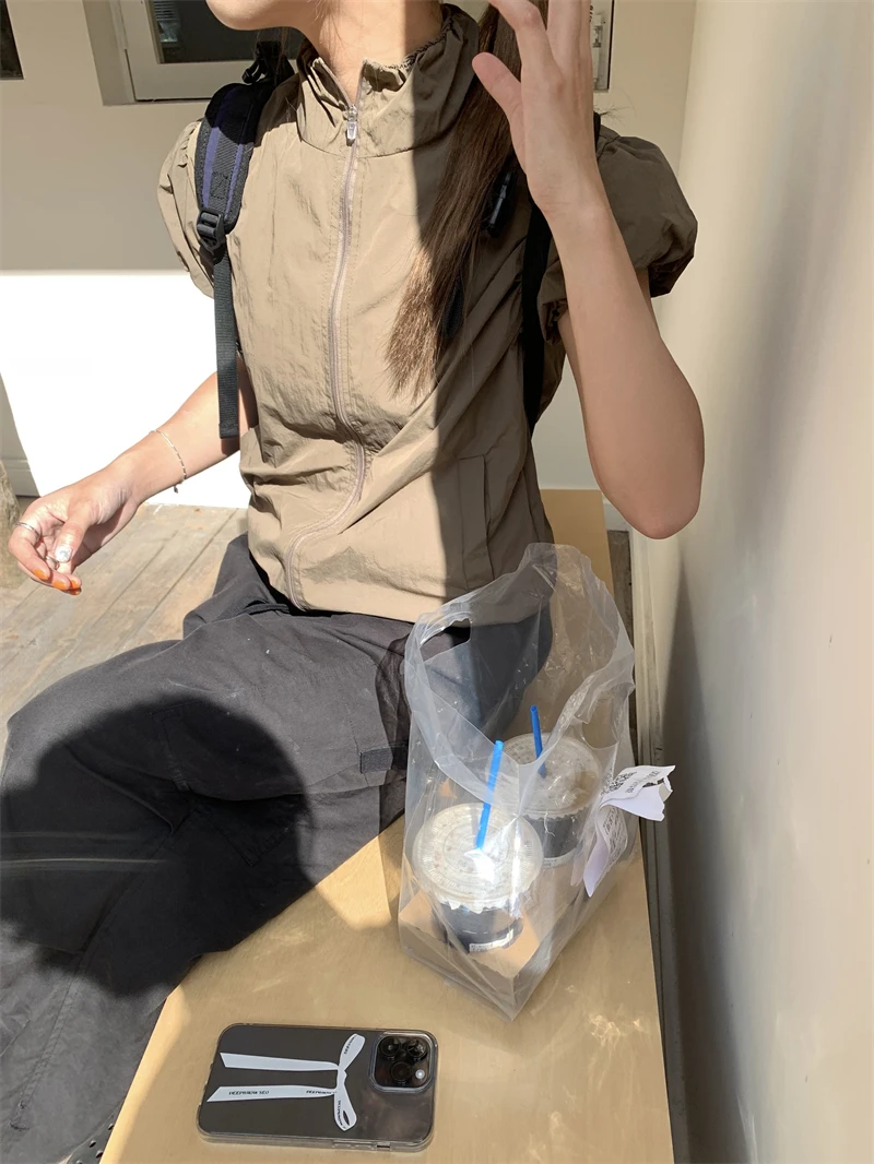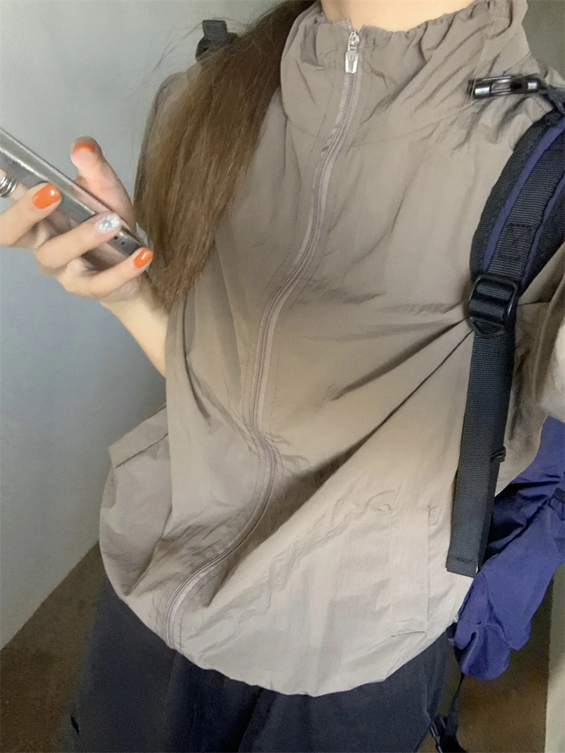Lunivop Korean style Sun Protection Solid Thin Chic Jackets Summer Vintage Slim Stand Neck Coat Casual Zipper Y2k Short Sleeve Coats