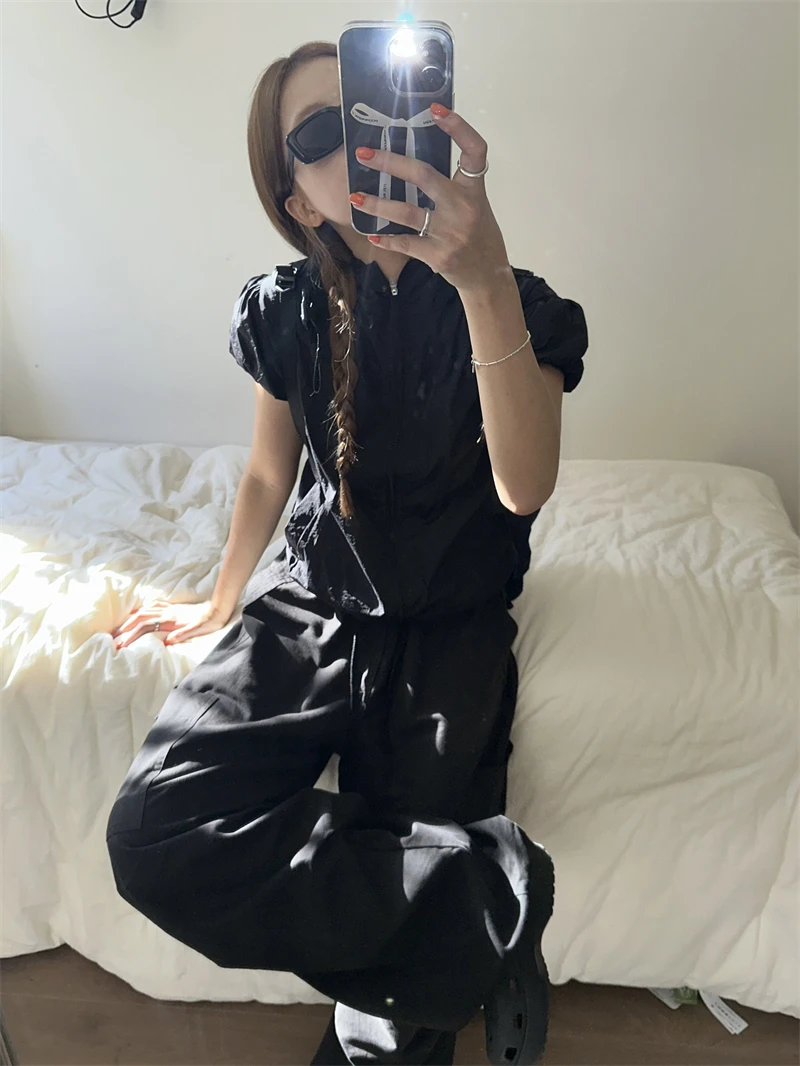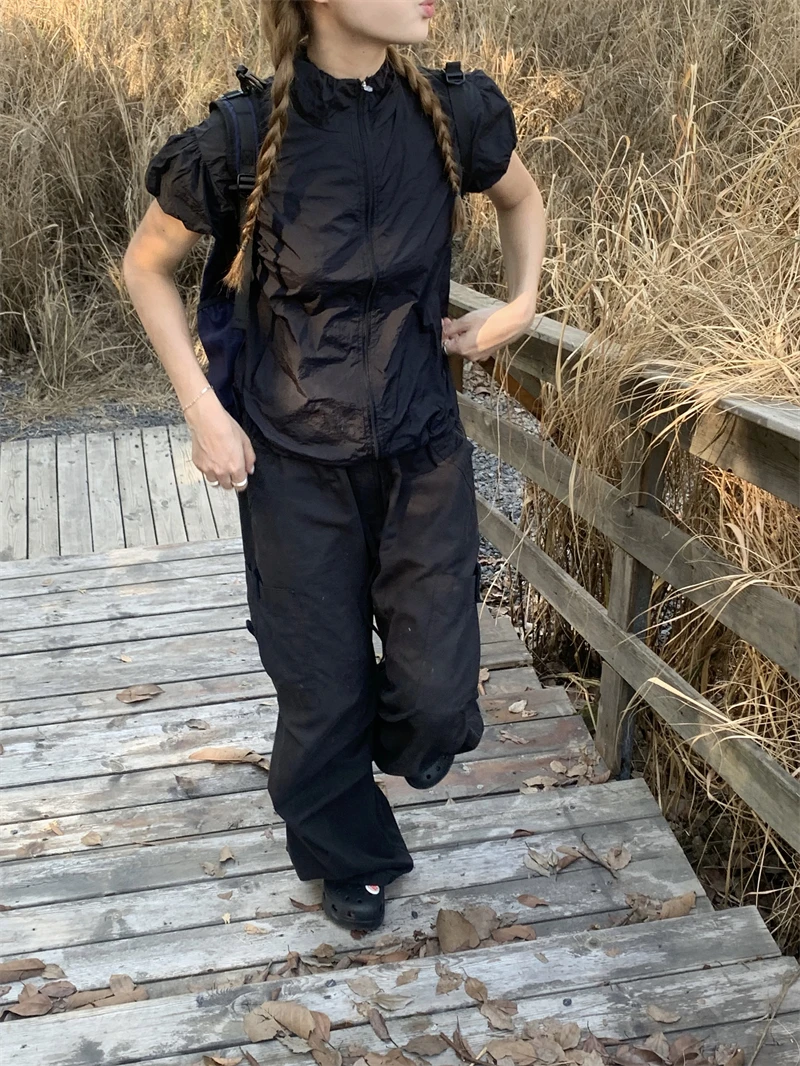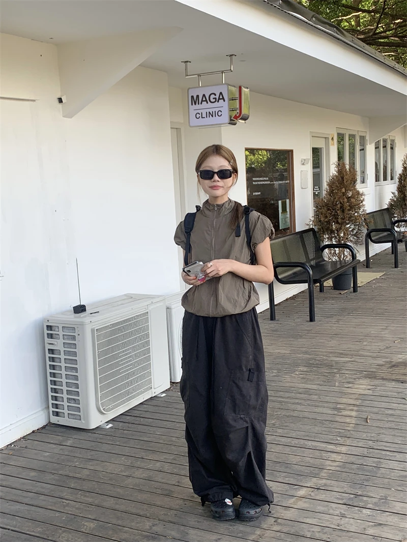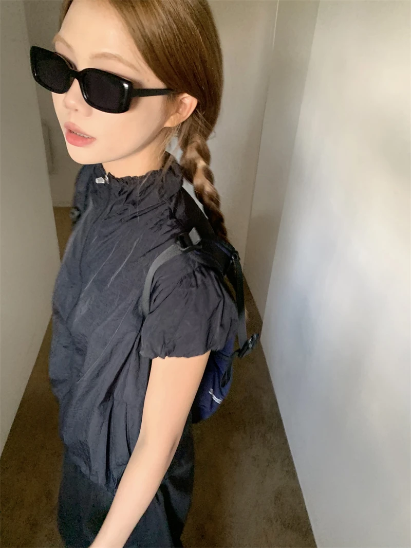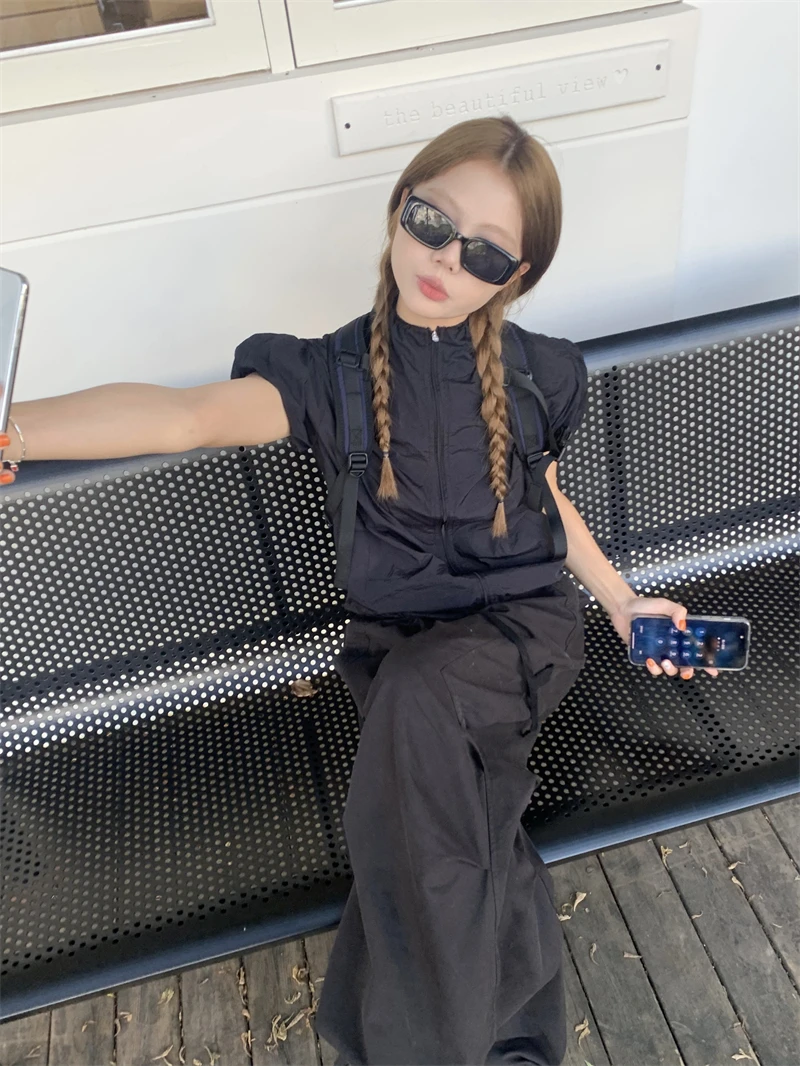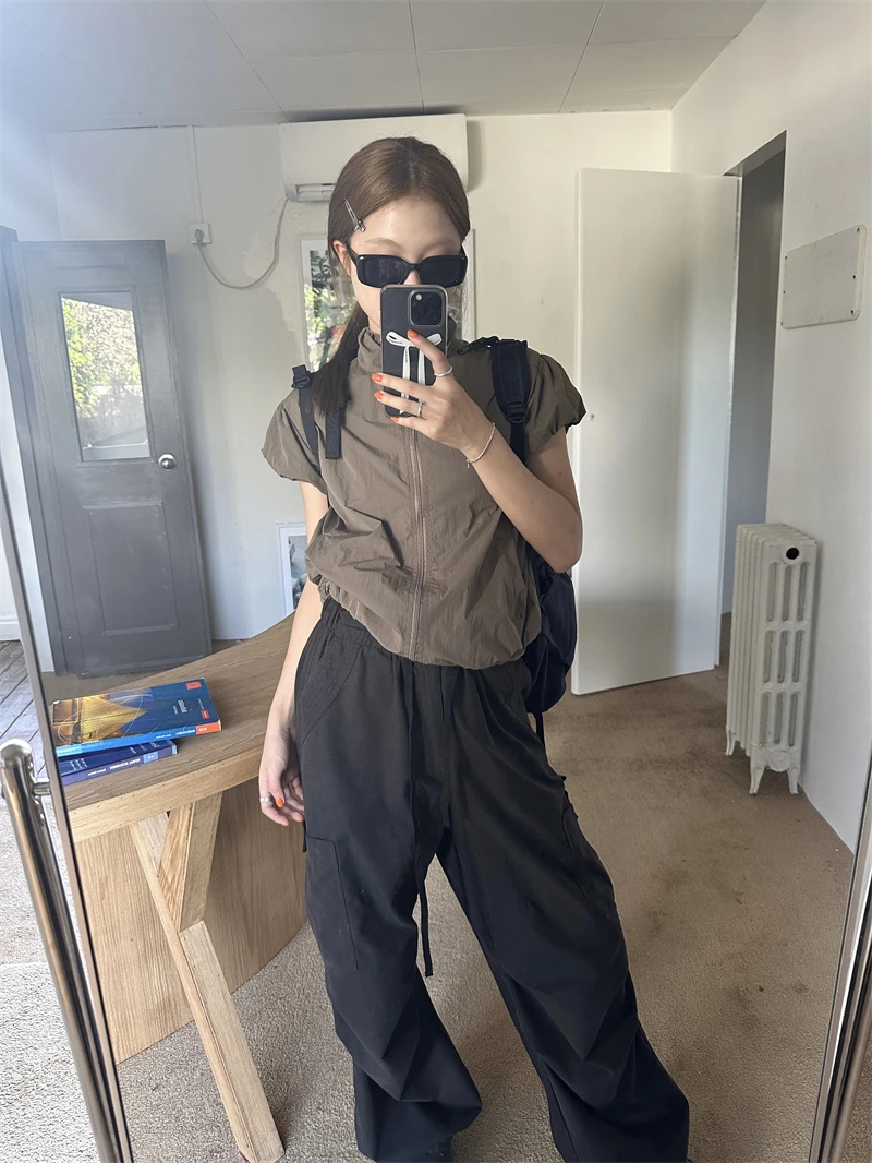 Lunivop Korean style Sun Protection Solid Thin Chic Jackets Summer Vintage Slim Stand Neck Coat Casual Zipper Y2k Short Sleeve Coats