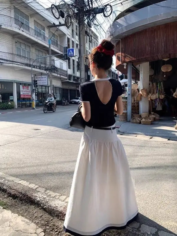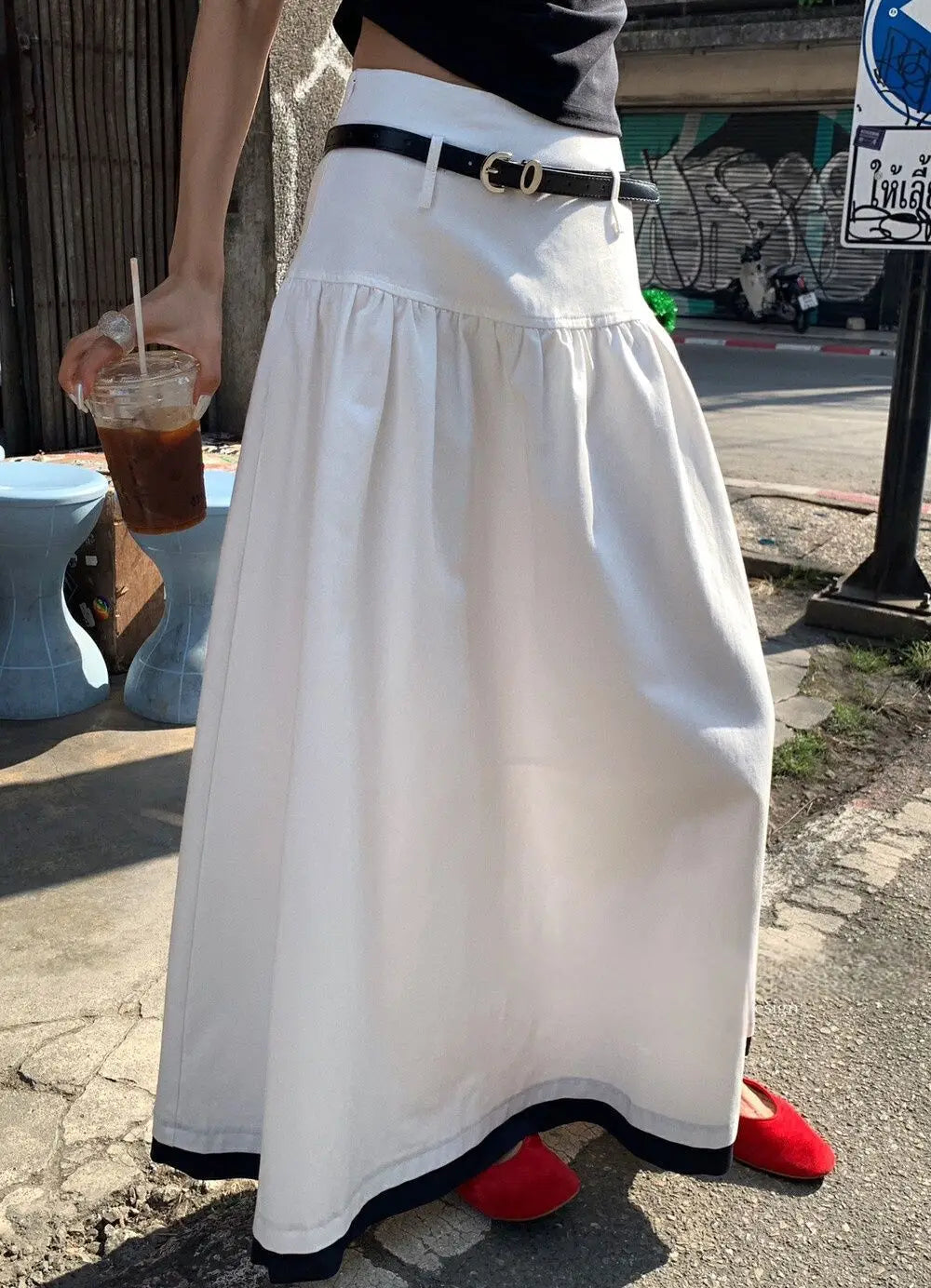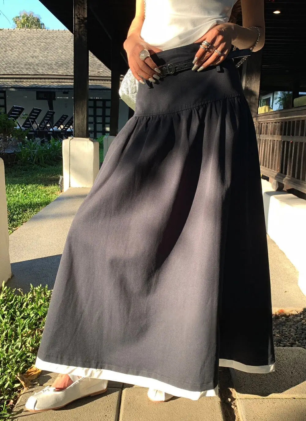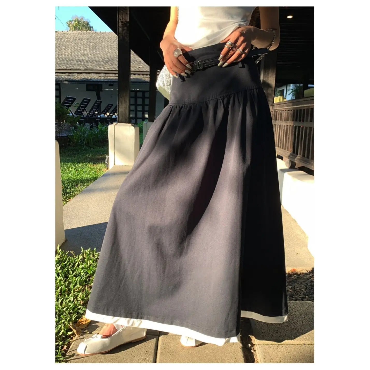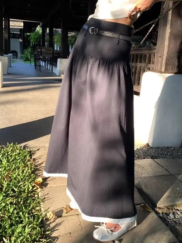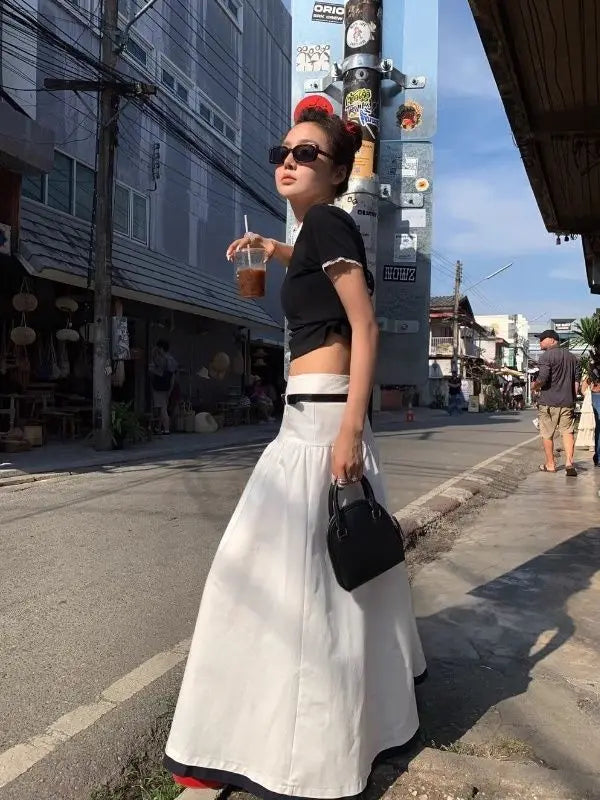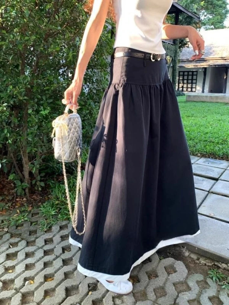 Lunivop Korean Style White Skirts Women Elegant Harajuku Black Long Skirts Vintage Fashion Casual Basic Midi Skirt Streetwear