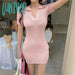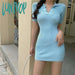 Lunivop Korean Summer Dress Women Casual Polo Collar Short Sleeve Mini Dress Slim Sheath Knit Dresses Vestidos Elegantes Para Mujer