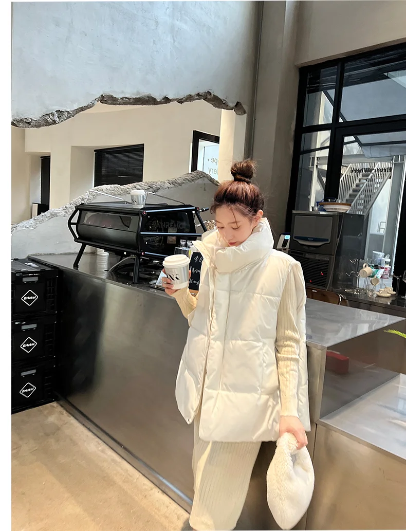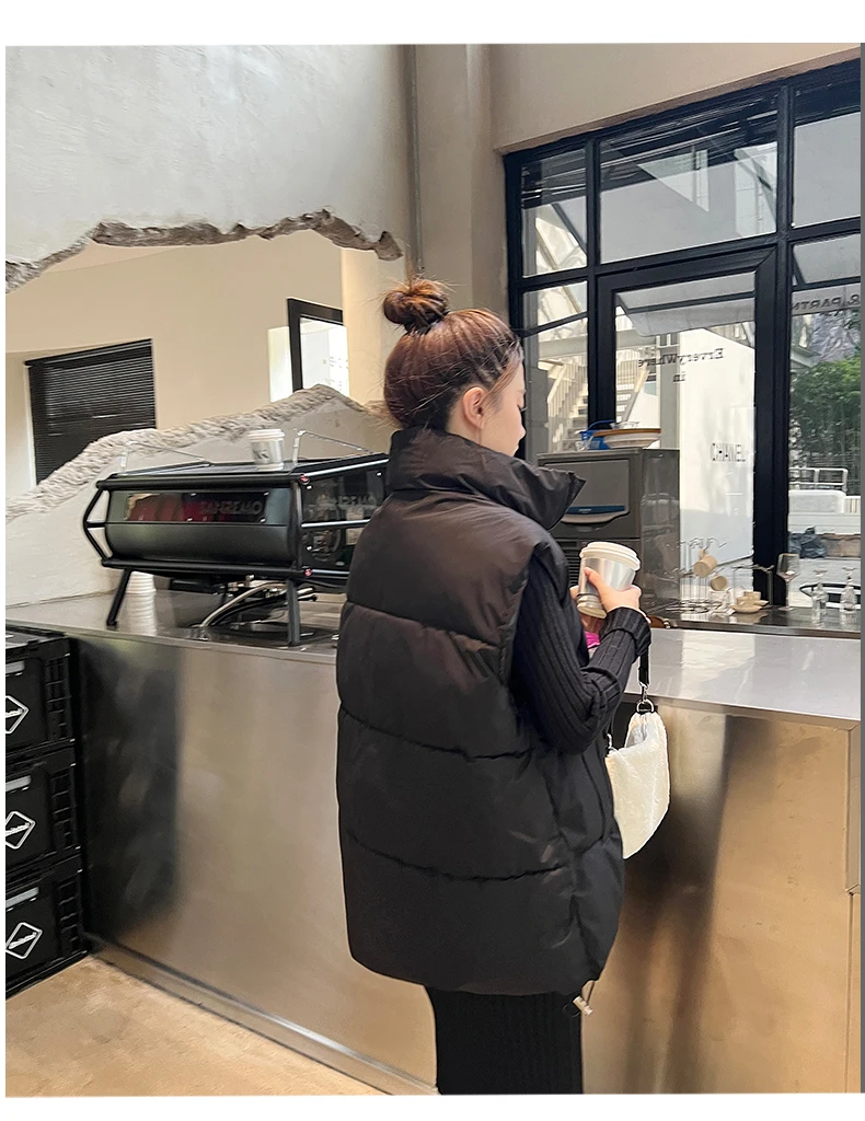 Lunivop Korean Vests Down Jacket for Women Autumn Winter New Fashion Casual Sleeveless Loose Parkas Chic Stand Collar Black Coats