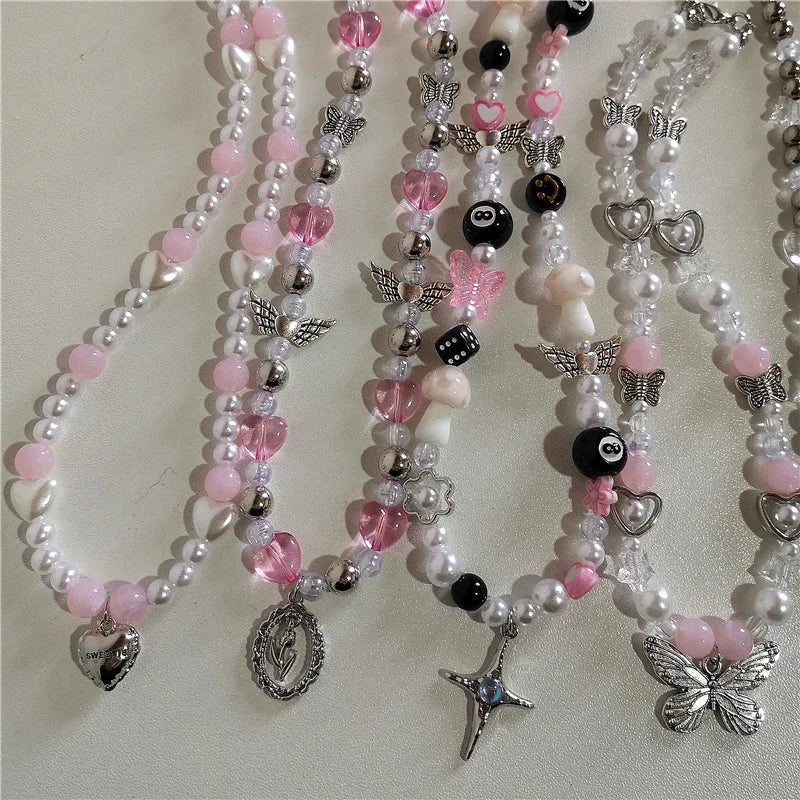 Lunivop Kpop Goth Y2k Cute Star Cross Butterfly Flower Bead Necklace Neck Decoration Egirl Grunge EMO 2000s Aesthetic Scene Accessories