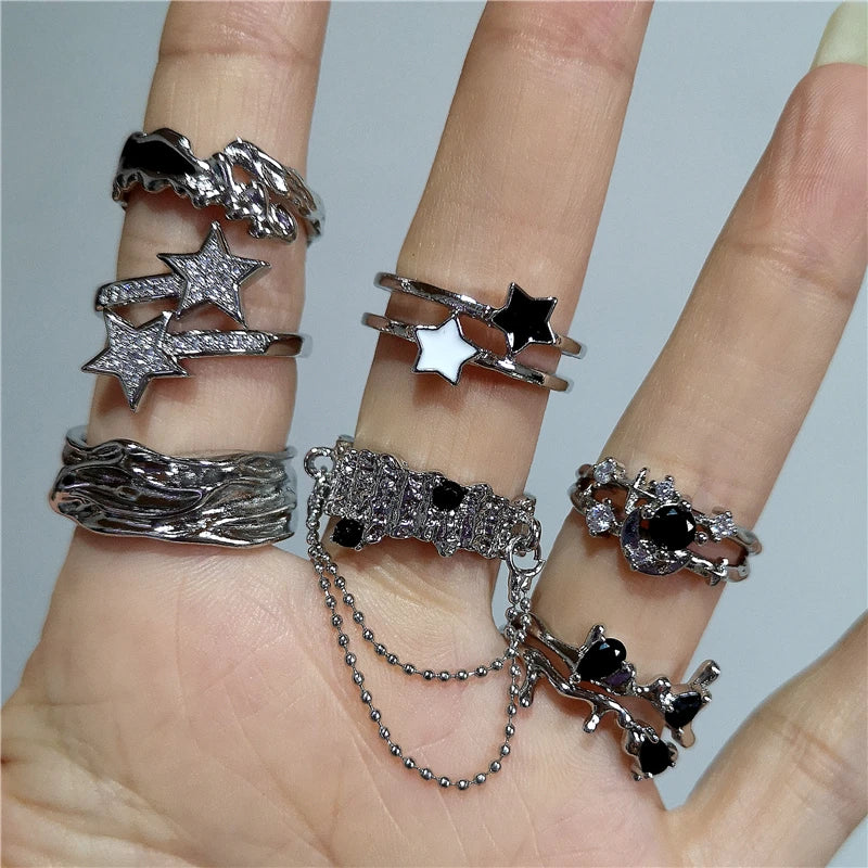 Lunivop Kpop Trend Gothic Aesthetic Zircon Crystal Star Double Layer Ring For Women Girls Jewelry Y2K EMO Fashion Grunge Accessories