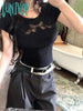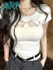 Lunivop Lace Crop T Shirts Women Sweet Girl White Bow Hollow Tees Aesthetic Korean Fashion Short Sleeve Crop Tops Summer