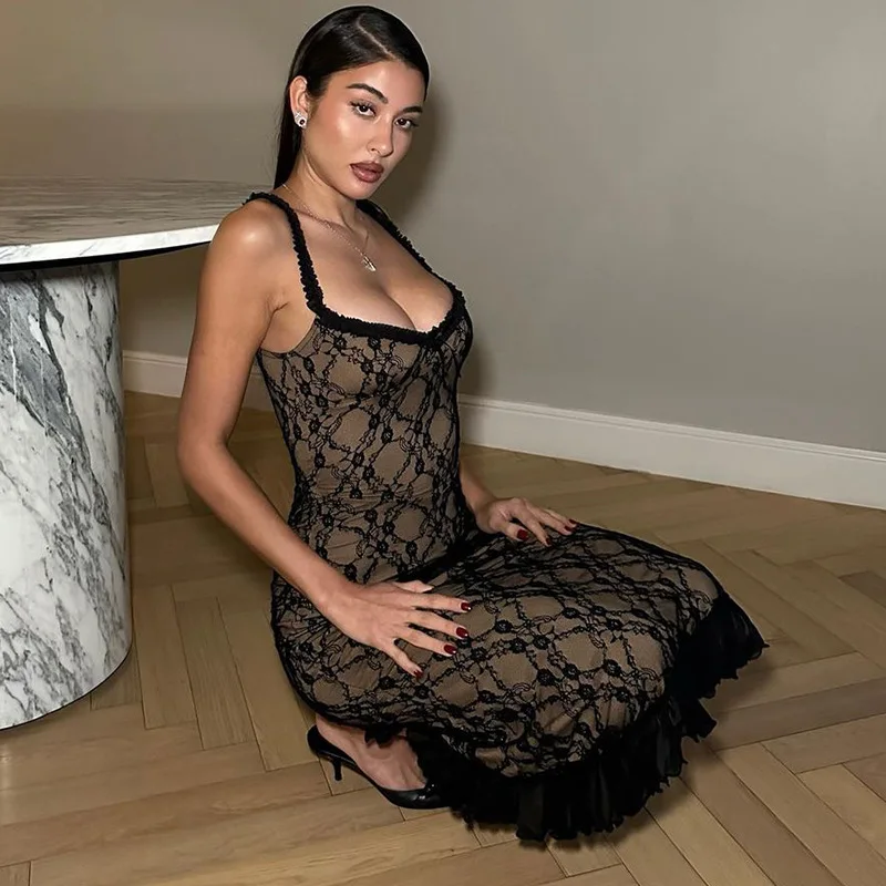 Lunivop Lace High Waisted Slip Dress For Women Sexy Chest Bow Sleeveless Backless Double Layer Clubs Party Summer New Long Dress