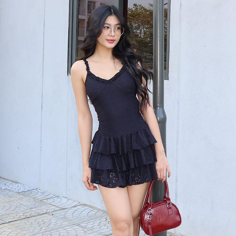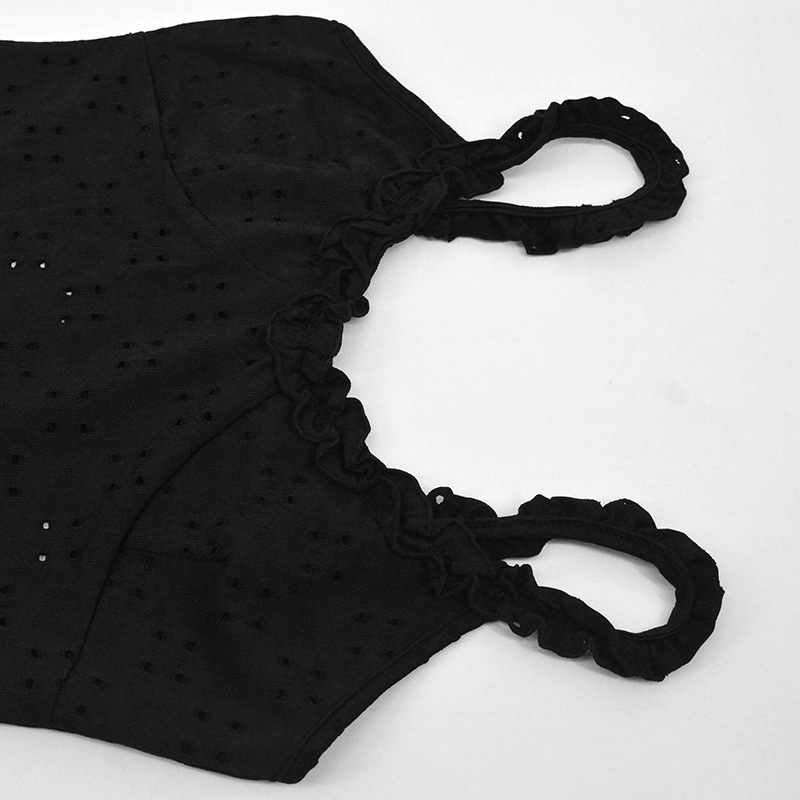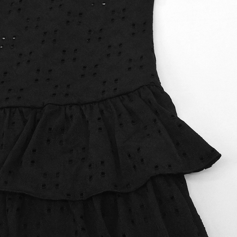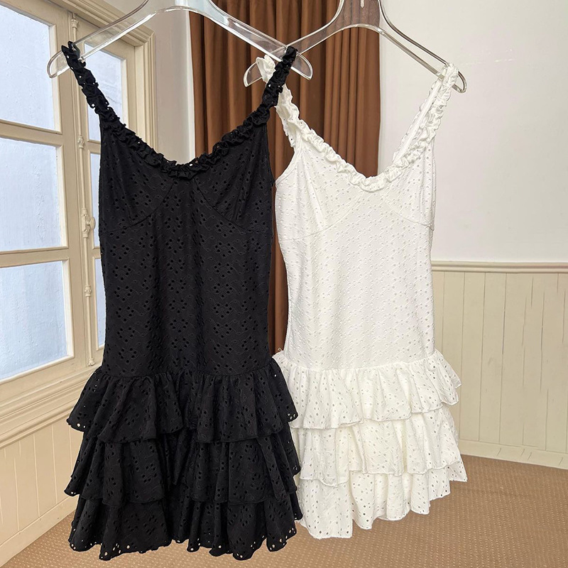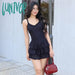Lunivop Lace Hollow Out Frill Mini Dress For Women Slim Ruffled New Summer Spaghetti Strap V-neck Ruched Dress Holiday Party