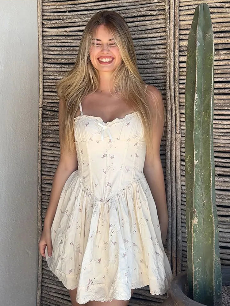 Lunivop Lace Trim Floral Pleated Mini Dress Women Summer Fashion Corset Slim Short Robes Lady Elegant Sexy Club Evening Party Dress 2025