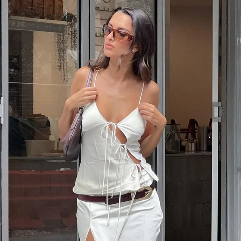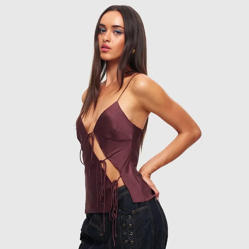 Lunivop Lace Up Hollow Camisole Women's Off-shoulder Spaghetti Strap Tank Sleeveless Slim Fit Fashion Y2K Hot Girl Sexy Crop Tops