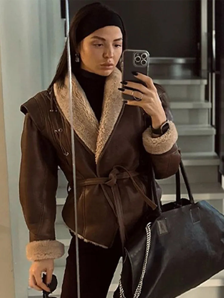 Lunivop Lace up Leather Turn-down Collar Jackets Women Vintage Suede Thickened Long Sleeved Coats Female Winter Warm Short Streetwear