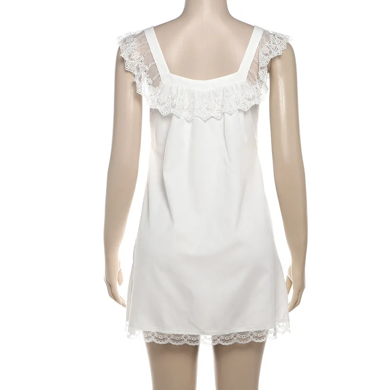 Lunivop Lace V-Neck Backless Bows Suspender Dress Women's Loose Sleeveless Sexy Solid Vacation Party Spaghetti Strap Dress Female