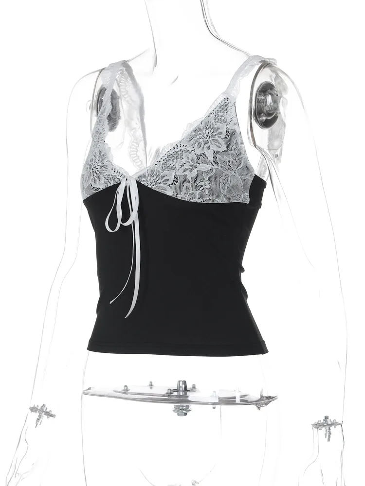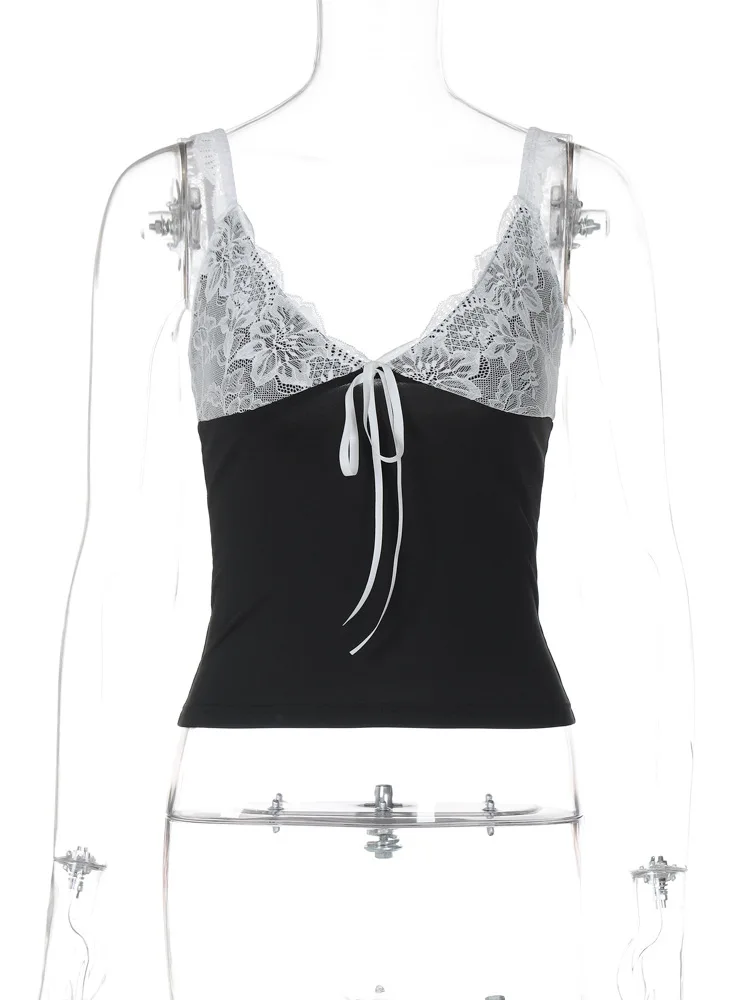 Lunivop Lace V Neck Sleeveless Lace Up Tank Top 2024 Slim Summer Y2K Streetwear Sexy Casual Clothes