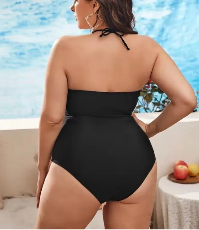 Large Size 4XL Sexy Black Bikini Women: Large Cup Halter Backless Bikini Swimwear