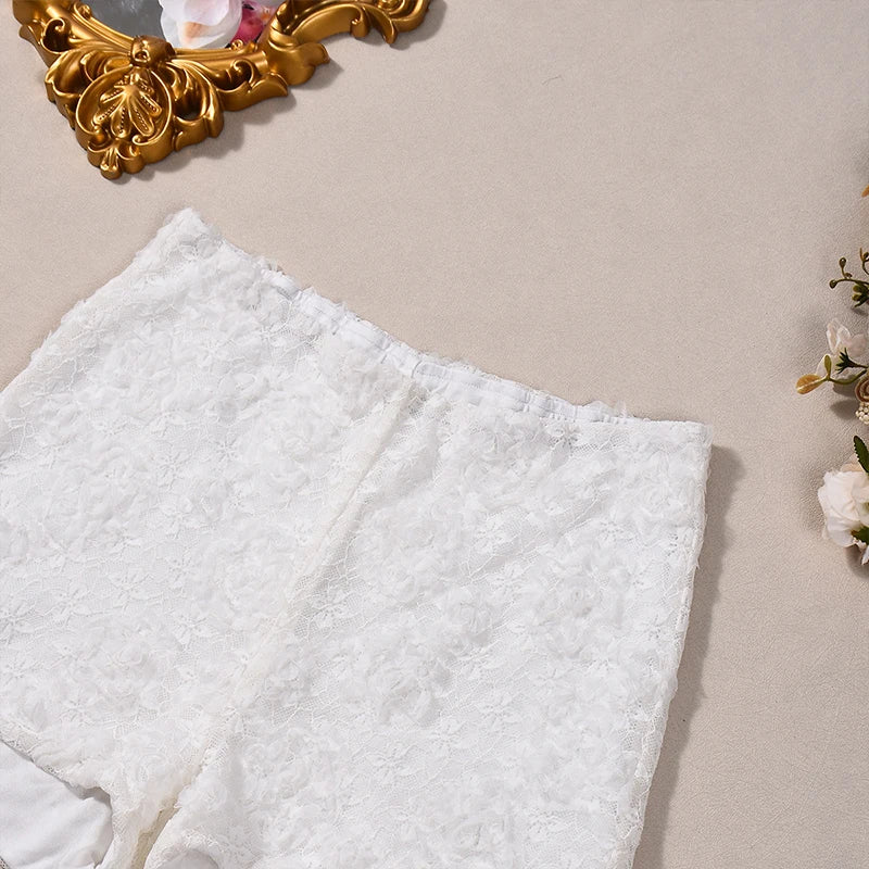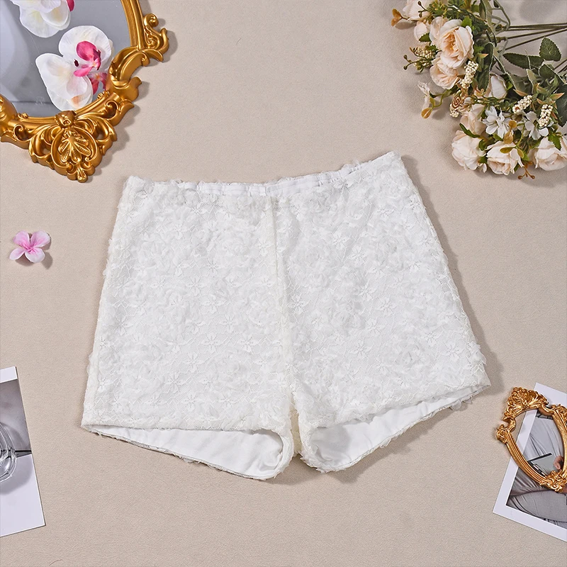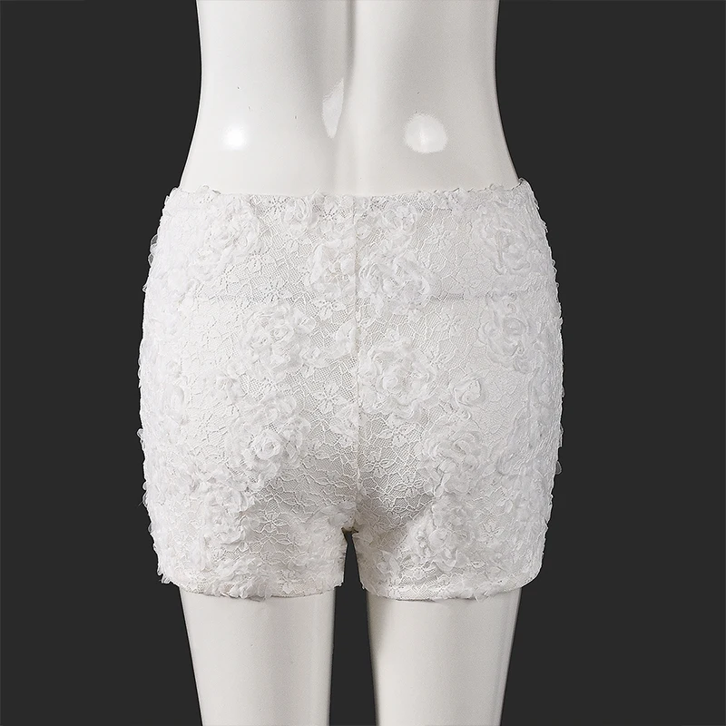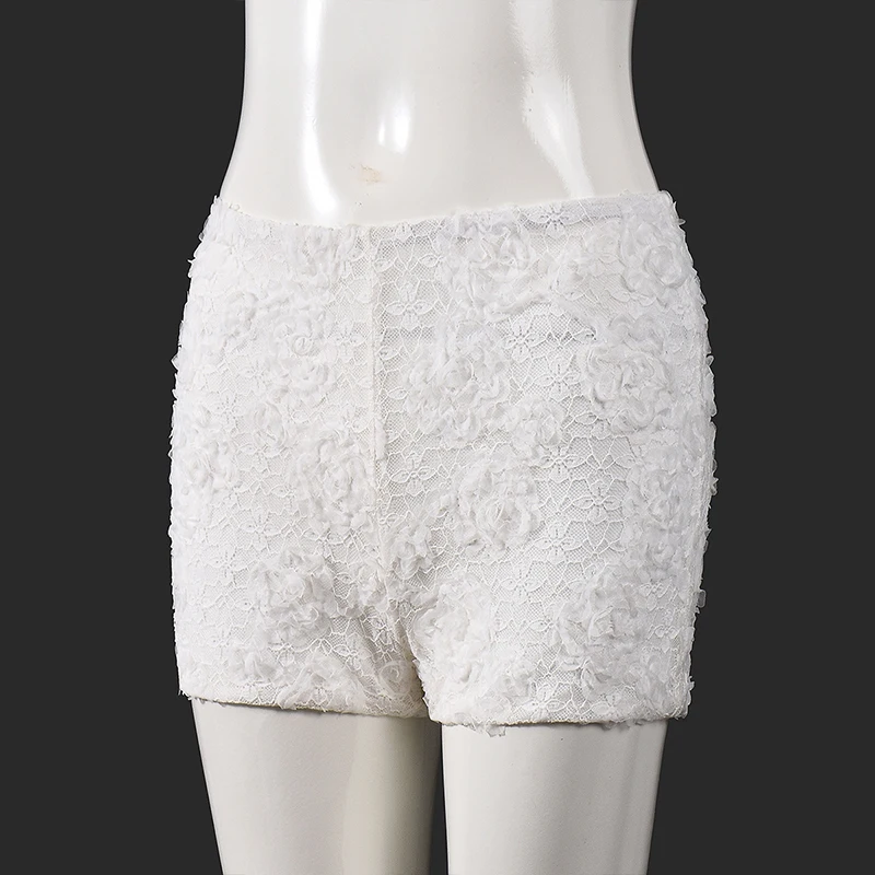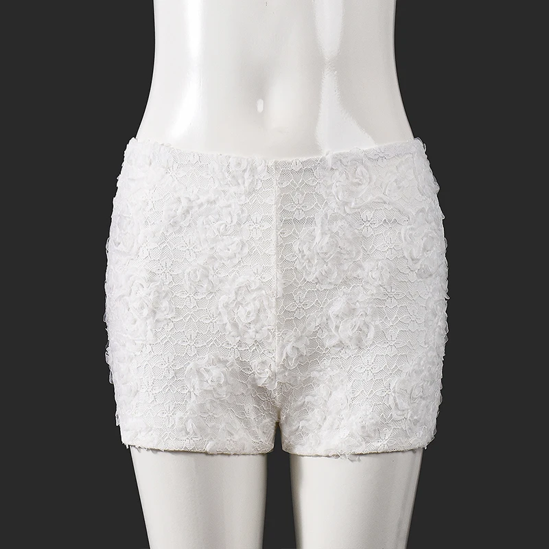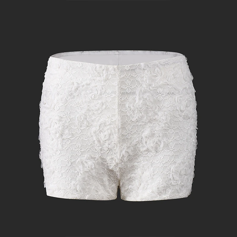 Lunivop Leisure New Style Fashion Pure White 3D Flower Decorative Elastic Waist Stretchable Package Hip Shorts Hottie Club Clothing