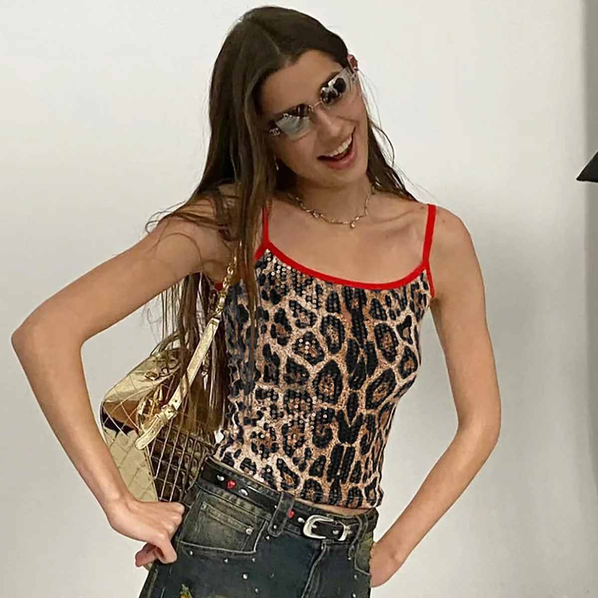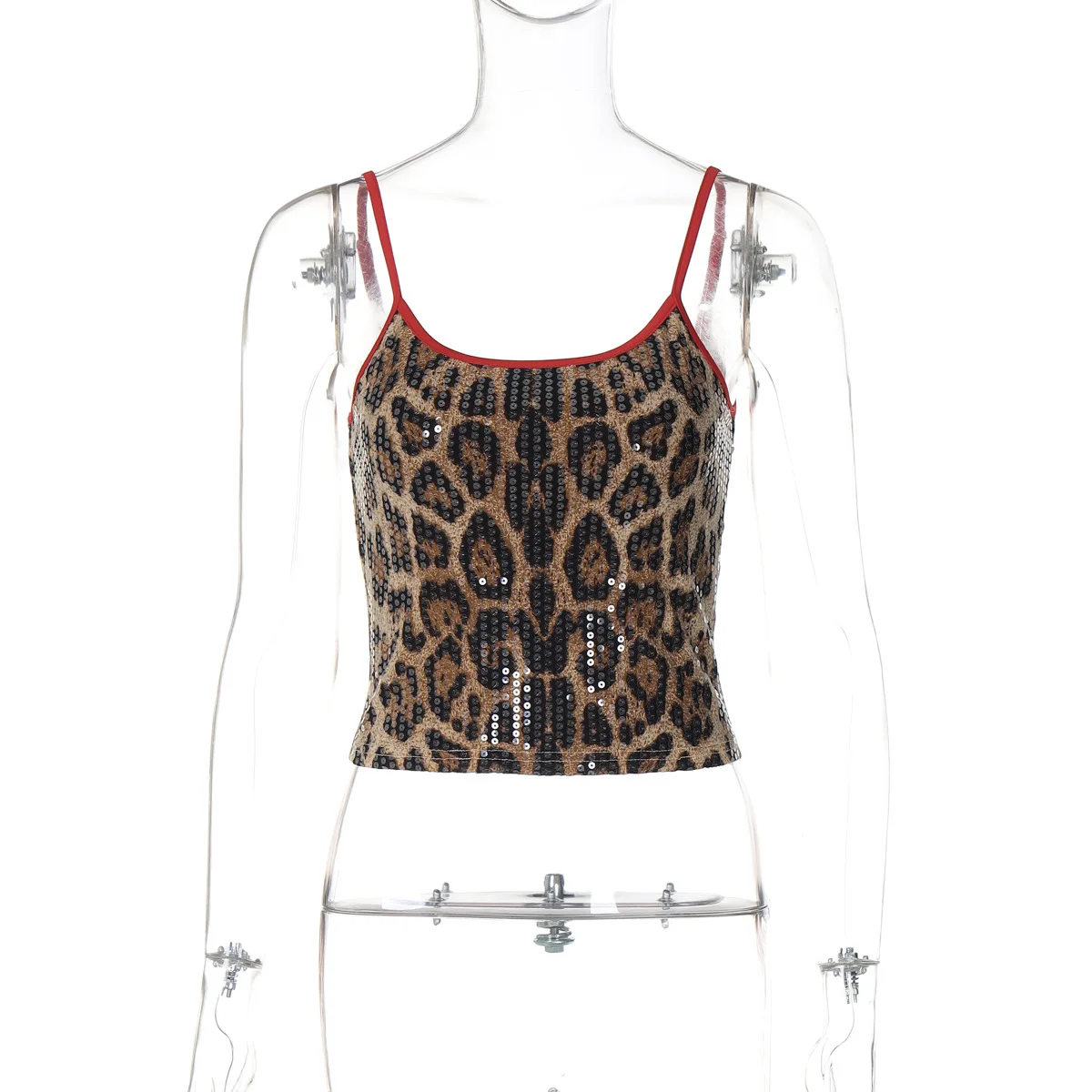 Lunivop Leopard Print Sequined Camis Tops Sexy High Waist Slim Sexy Fashion Casual Clothing Streetwear Wholesale New Clothing