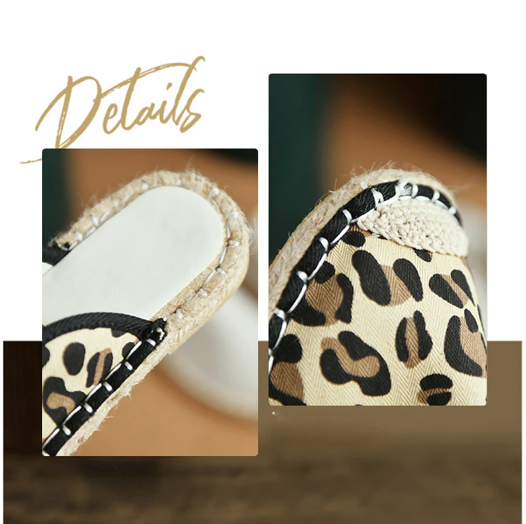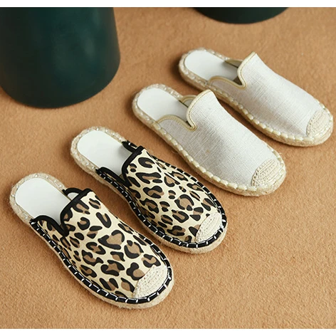 Lunivop Leopard Print Slipper Female Summer New Flat Bottom Women's Shoes Fashion Linen Slippers Shoes for Women Zapatos De Mujer