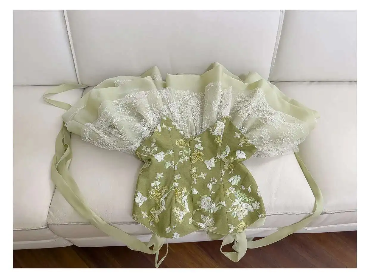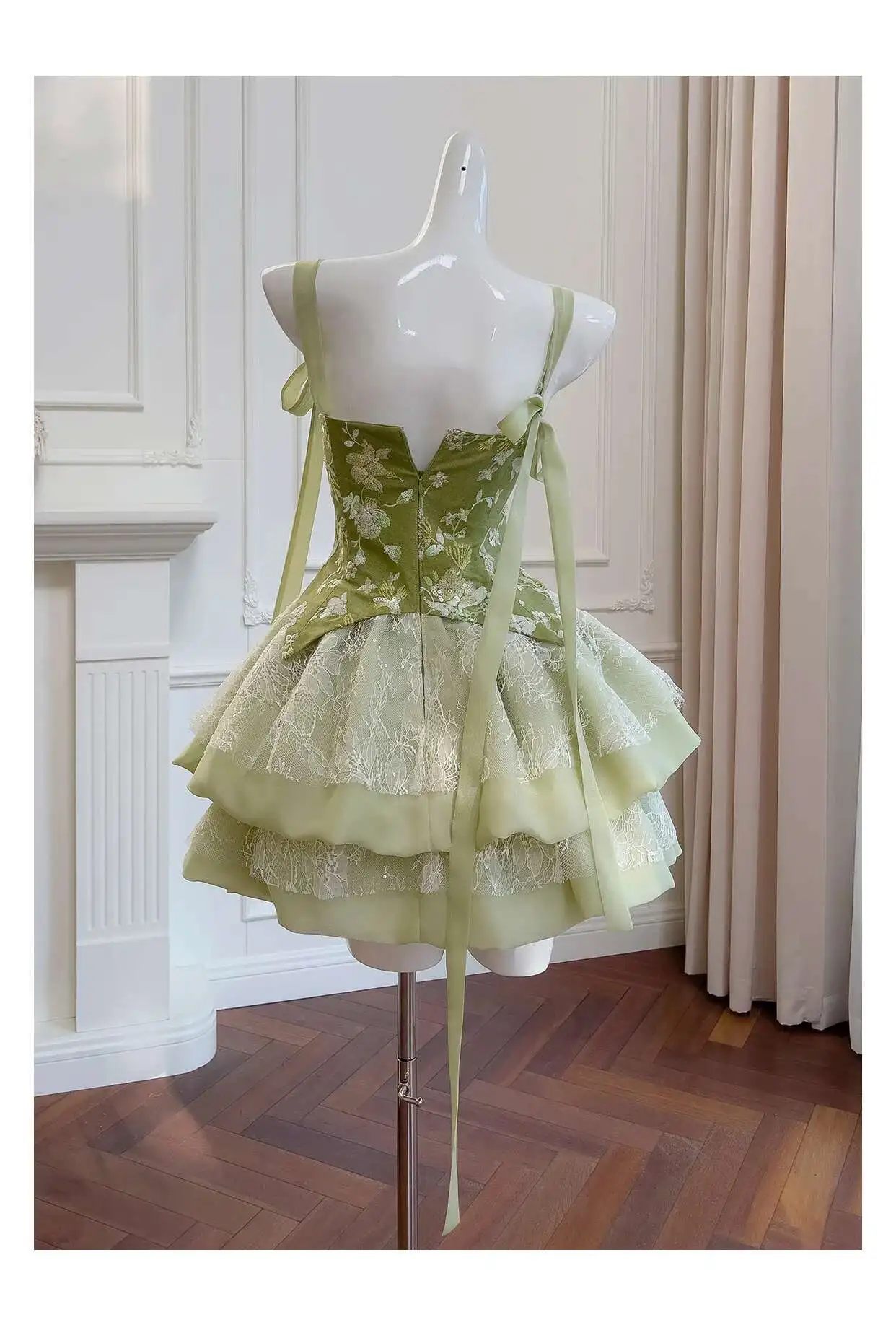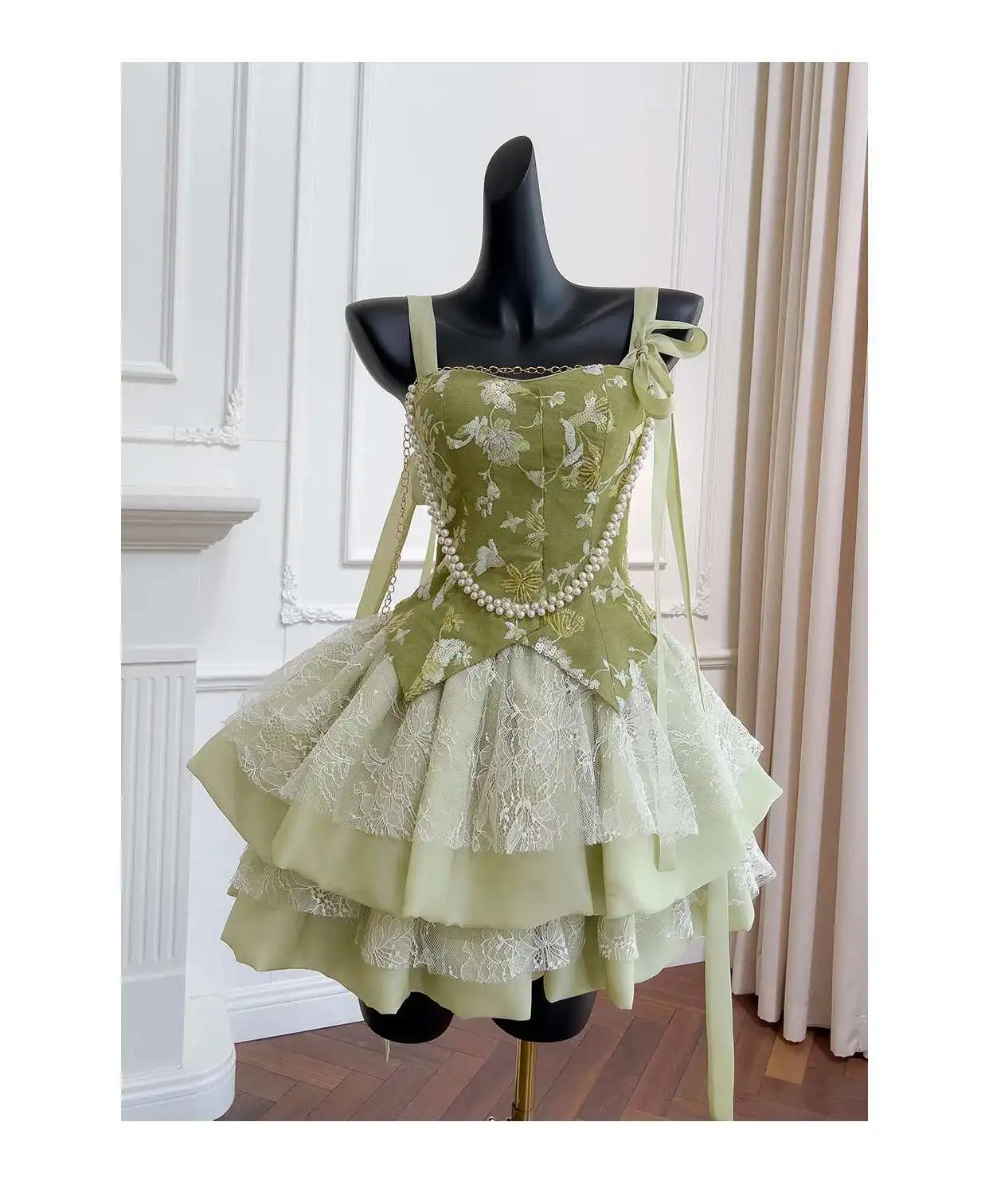 Lunivop Light Luxury Lace-up Dress Women Spliced Embroidery Suspender Ballet Style Cake Fluffy Dresses Female