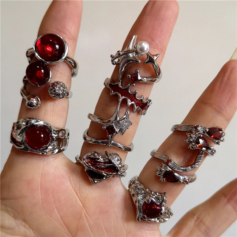 Lunivop Liquid Irregular Red Crystal Heart Pearl Star Rings Women Y2K Gothic Animal Ring Aesthetic Creative Grunge Jewelry Accessories