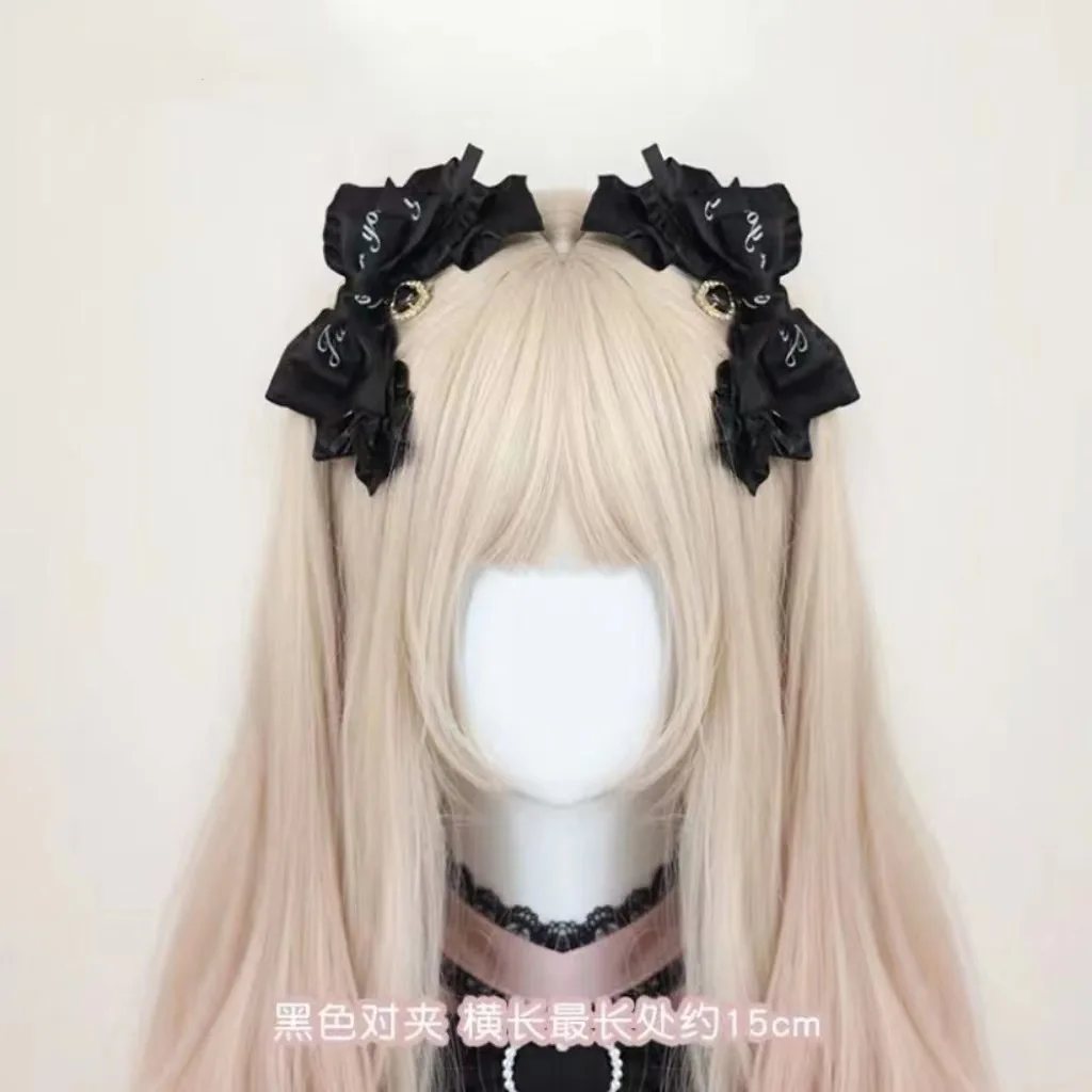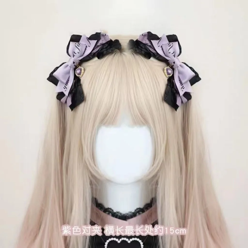 Lunivop Lolita accessories black pink bow hair clip Japanese sweet cool handmade hair accessories headwear anime accessories
