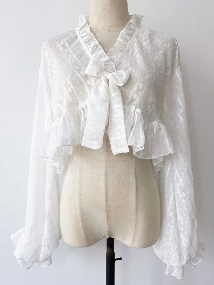 Lunivop Lolita Sweet Sun Proof Shirt Women Cute Bow Lantern Sleeve Cropped Blouse Japan Kawaii Casual Elegant Jk Open Stitch Tops