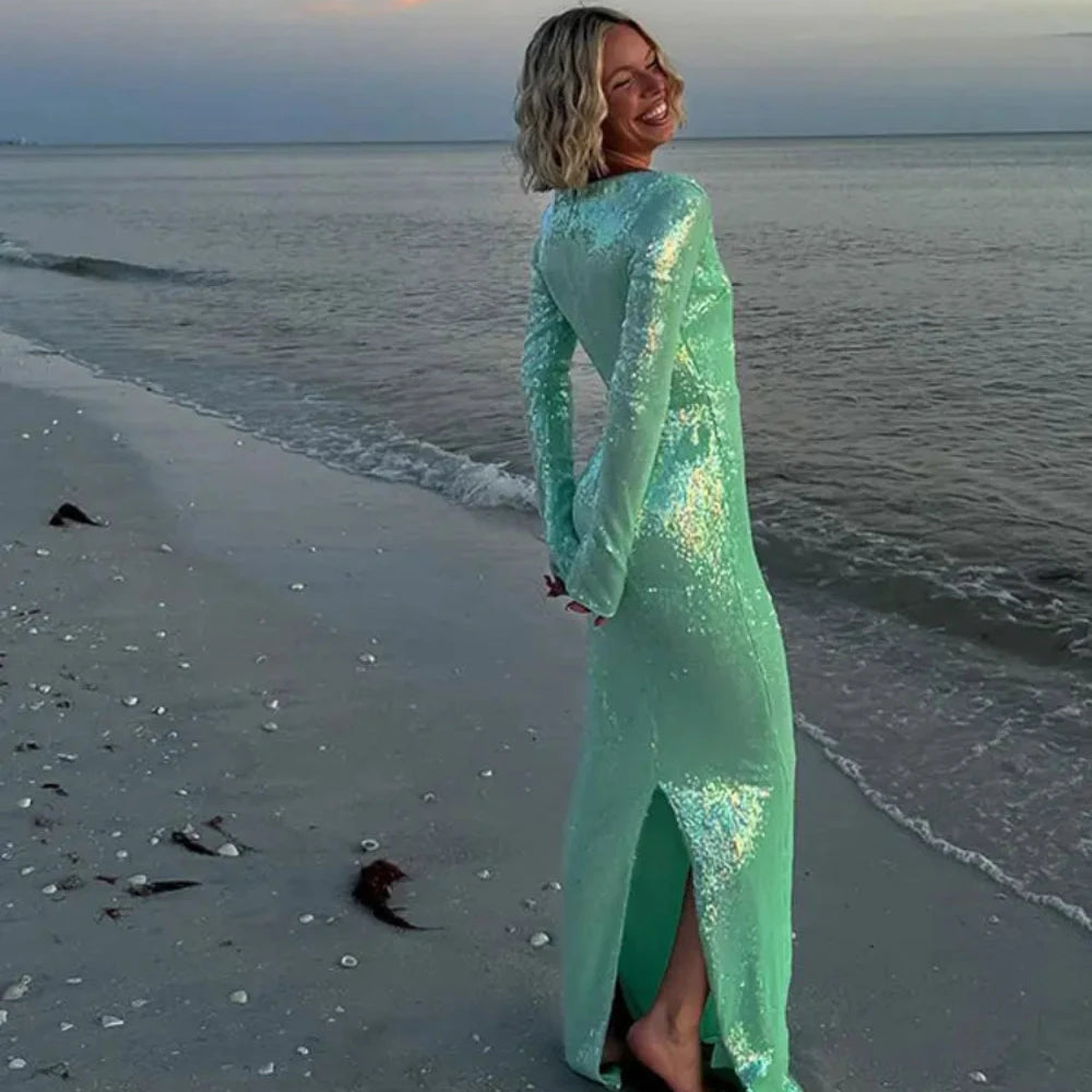 Lunivop Long Sleeve Formal Occasion Dresses for Women 2024 Autumn Sequins Elegant Maxi Dress Wedding Guest Party Dresses