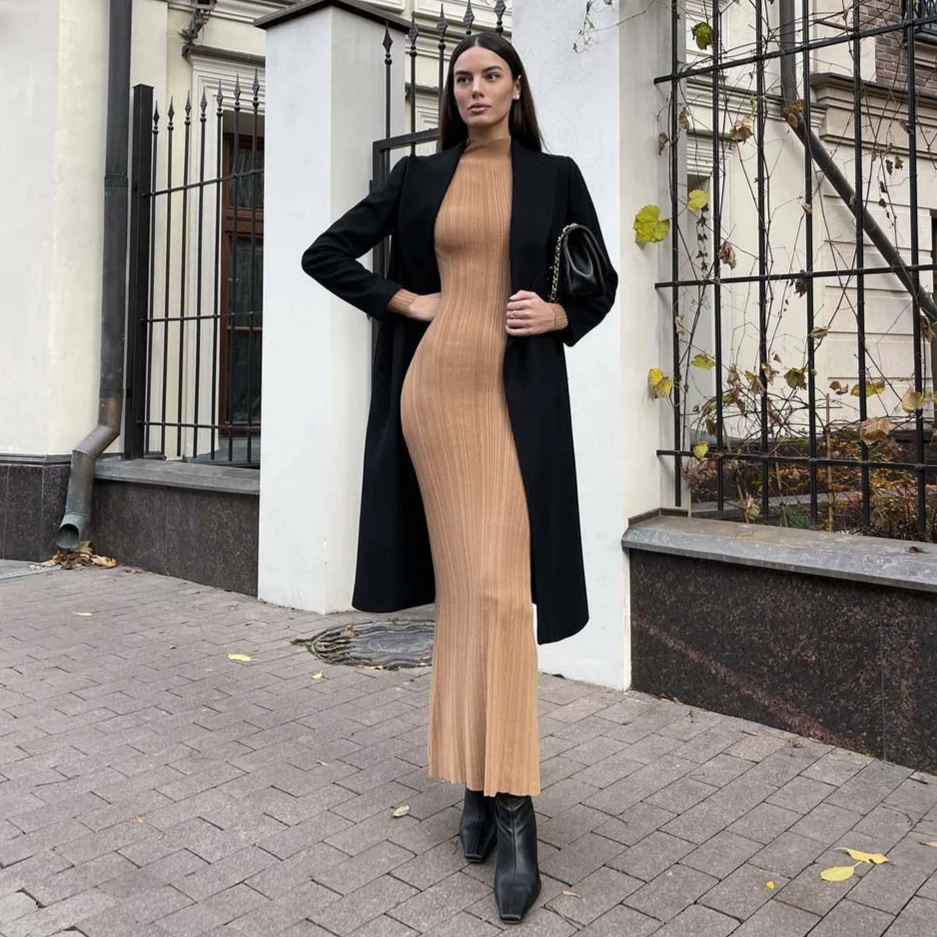 Lunivop Long Sleeve Knitted Dress Women Elegant Turtleneck Slim Maxi Sweater Dresses Autumn Winter Casual Solid Basic Party Dress