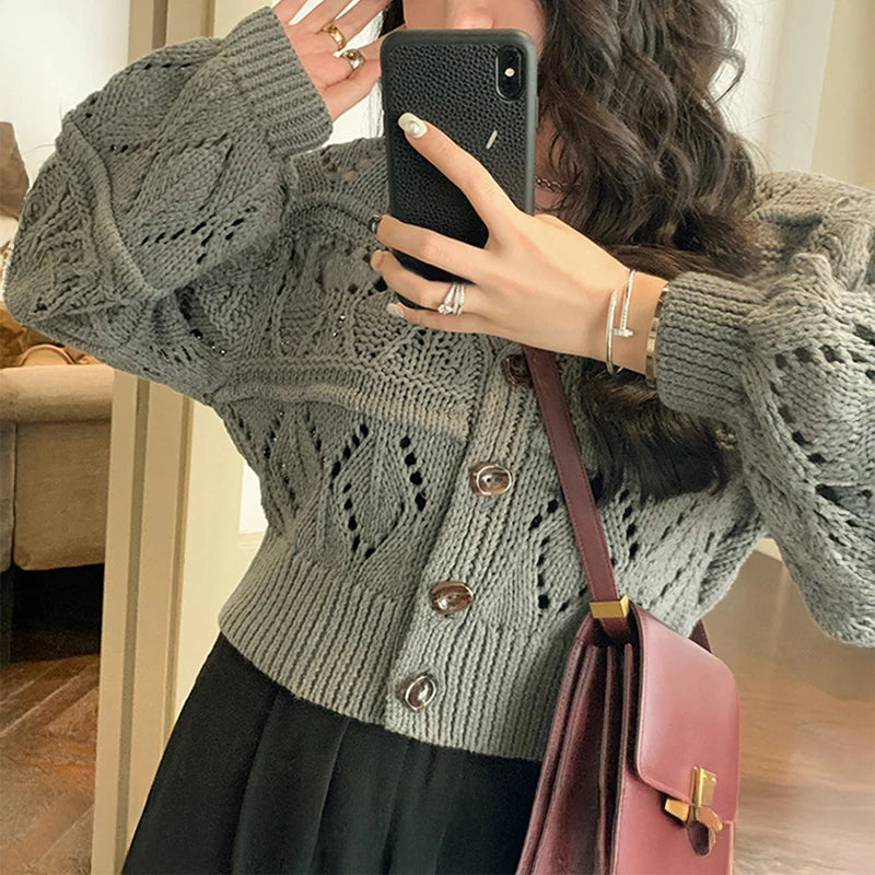 Lunivop Long Sleeve Pointelle Knit Top Women Sweater Cardigan Sheer Button-up Sweater Jacket blusas para mujer Vacation Boho Outfit
