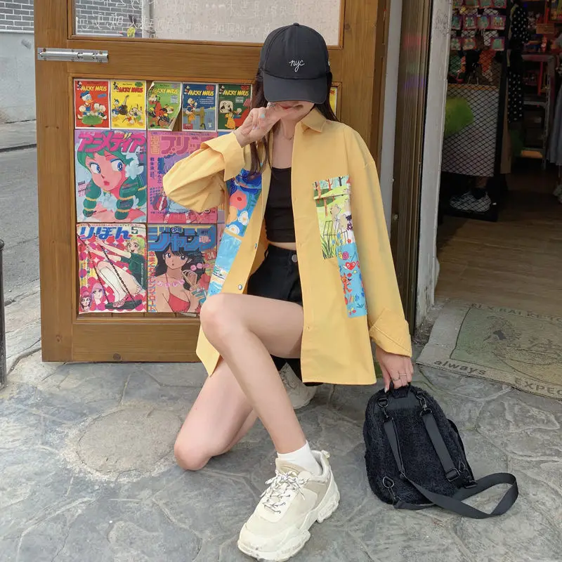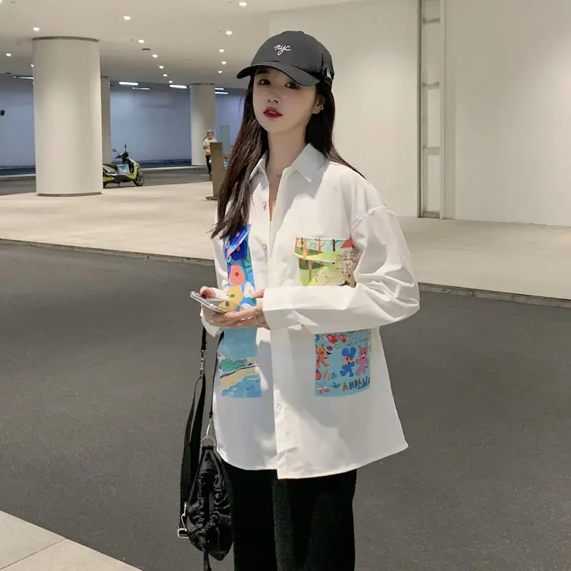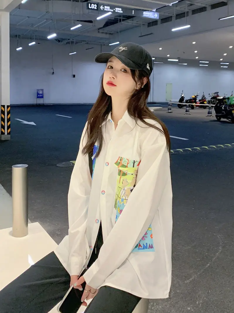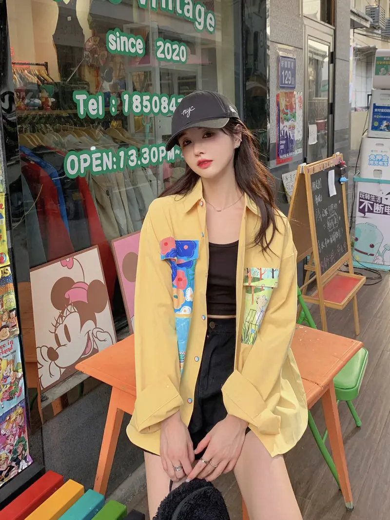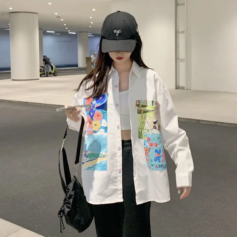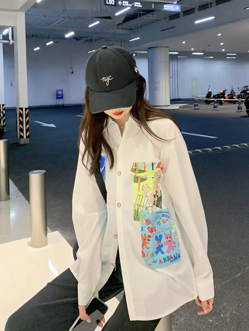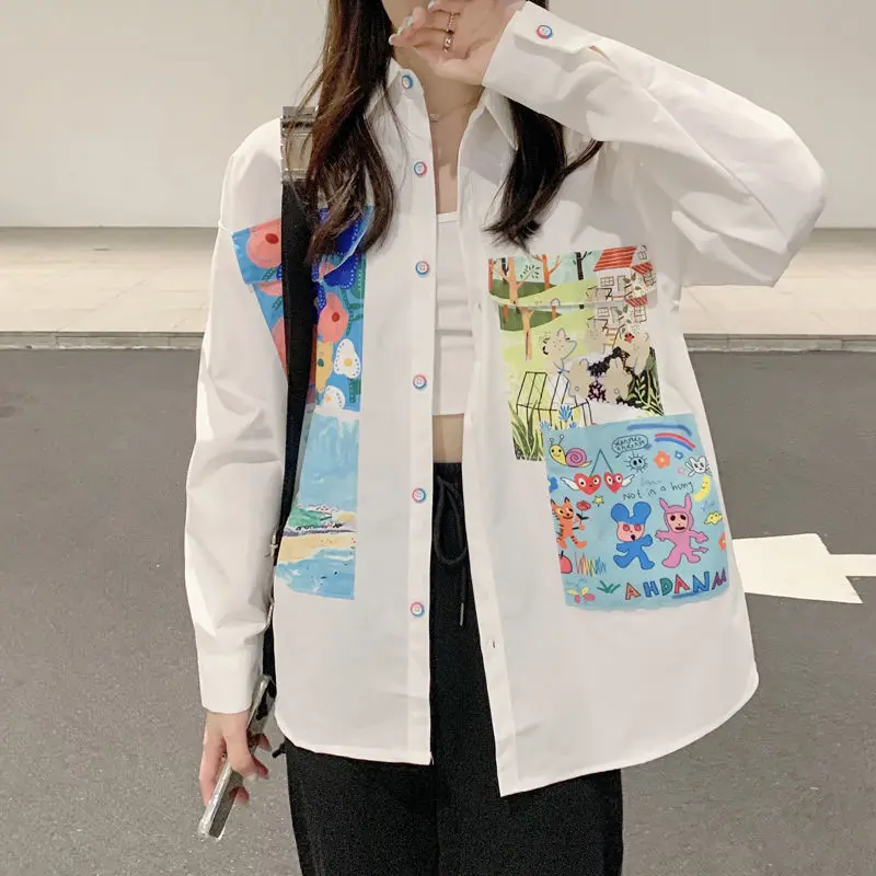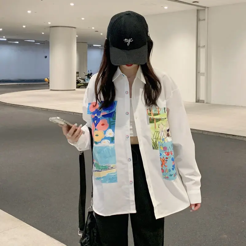 Lunivop Long Sleeve Summer Button Up Shirt for Women Girl Blouse Tops Streetwear Holiday Y2k Vintage Graphic Clothes Loose Cardigan