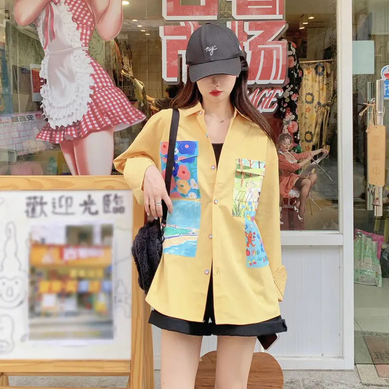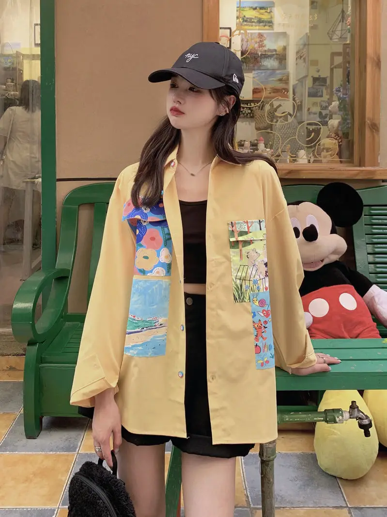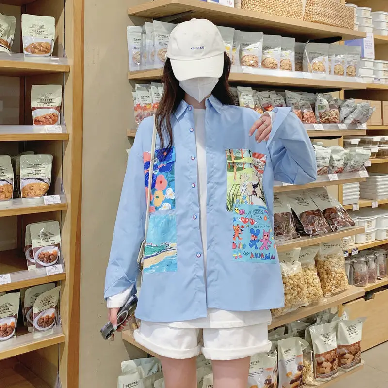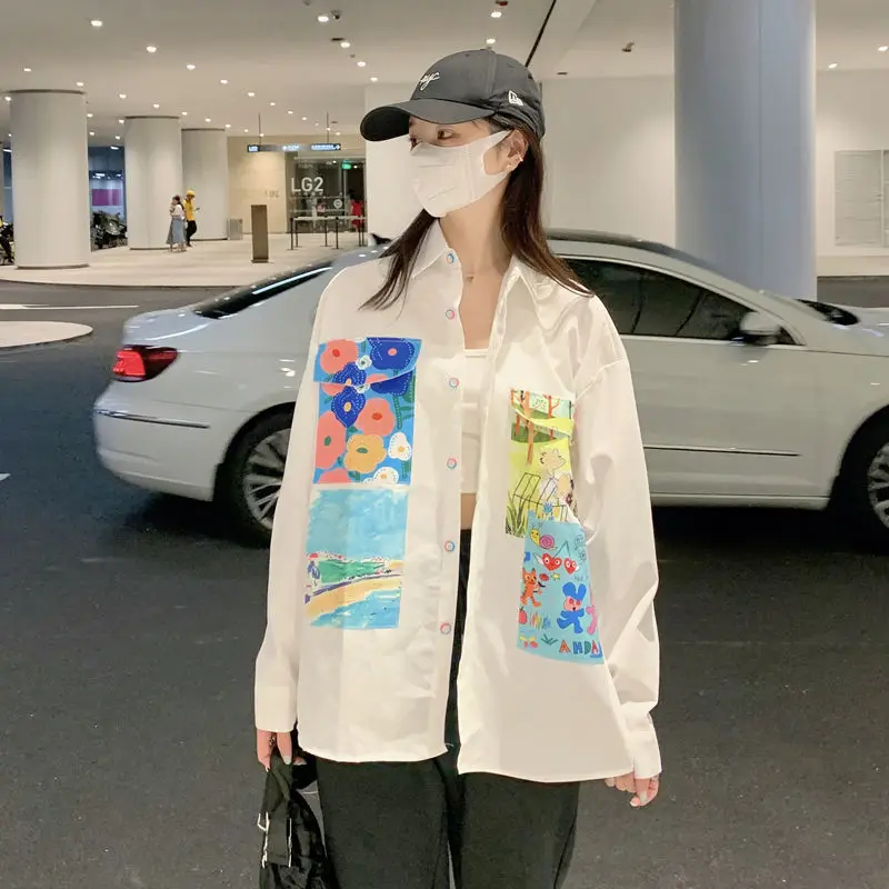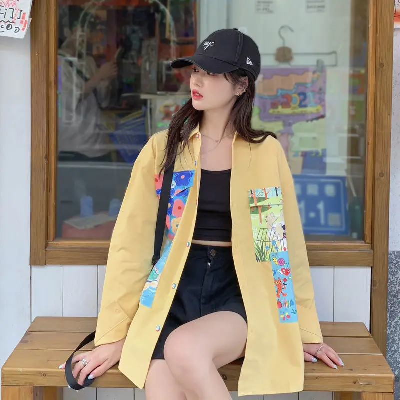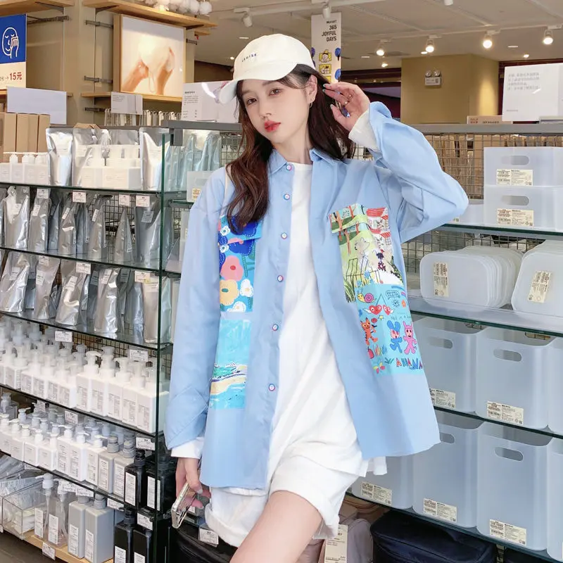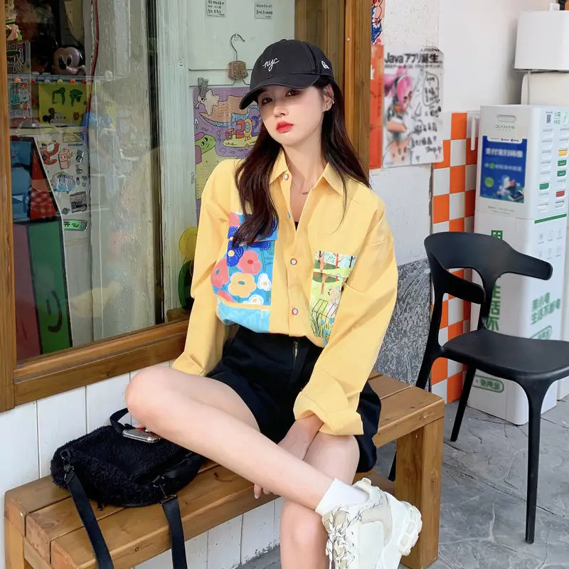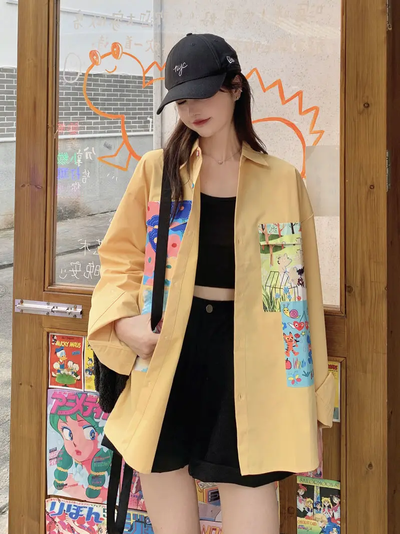 Lunivop Long Sleeve Summer Button Up Shirt for Women Girl Blouse Tops Streetwear Holiday Y2k Vintage Graphic Clothes Loose Cardigan