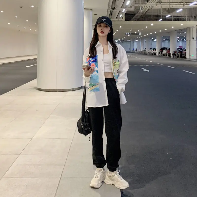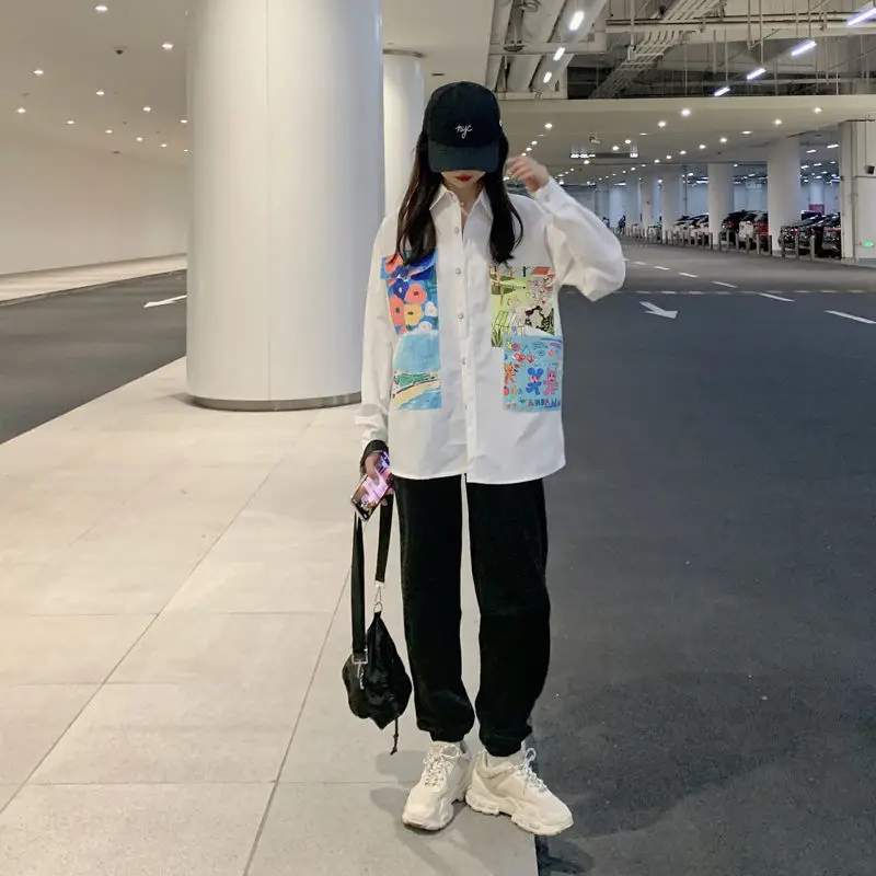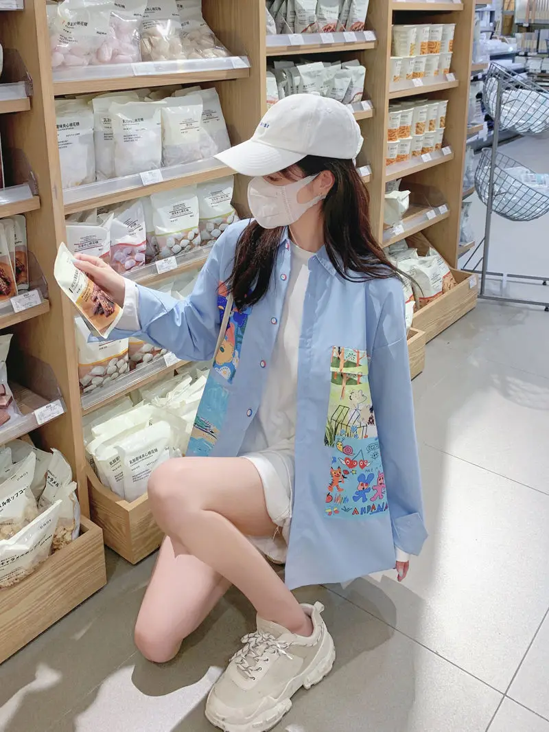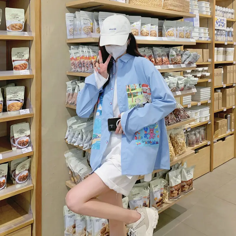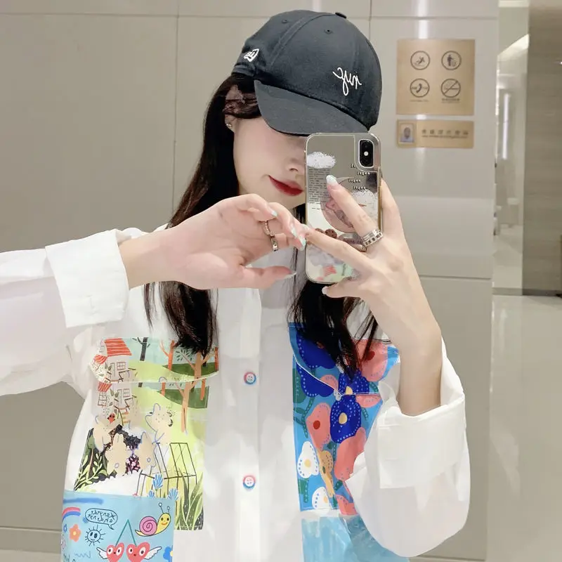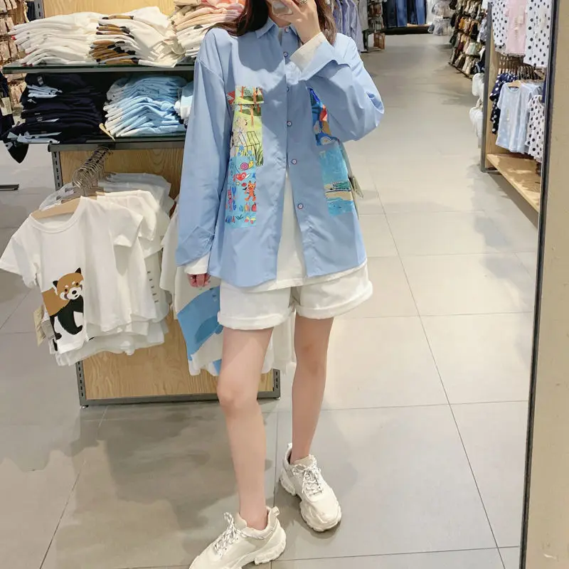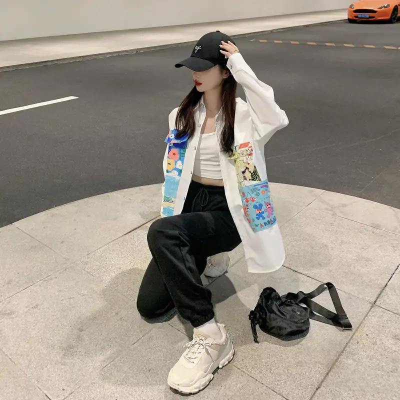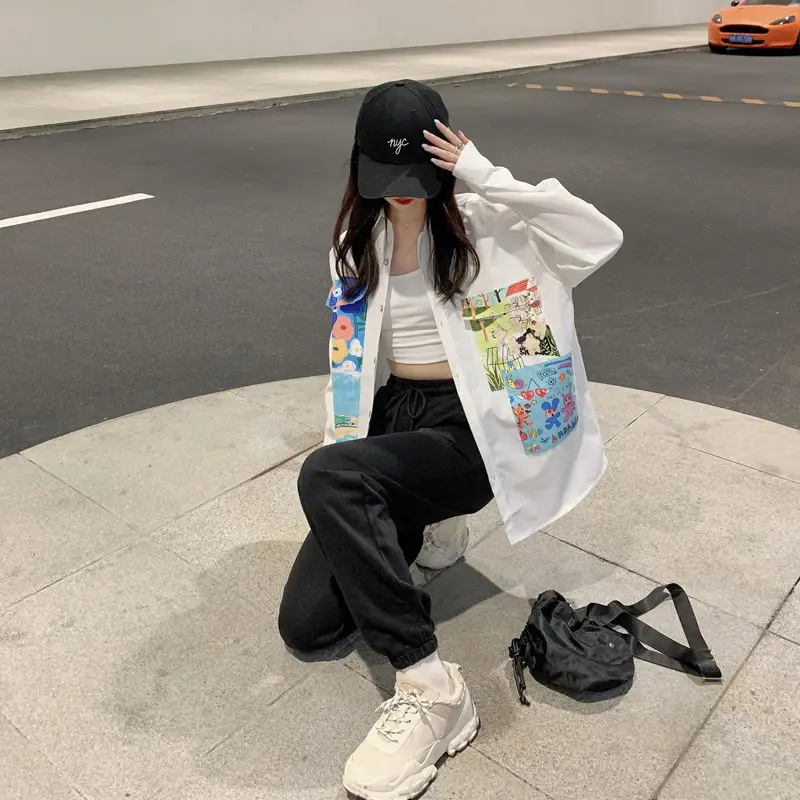 Lunivop Long Sleeve Summer Button Up Shirt for Women Girl Blouse Tops Streetwear Holiday Y2k Vintage Graphic Clothes Loose Cardigan