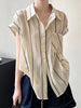 Lunivop Loose Women Striped Shirt Vintage Short Sleeve Casual Pocket Blouse French Retro Simple Female Summer Elegant Sweet Tops