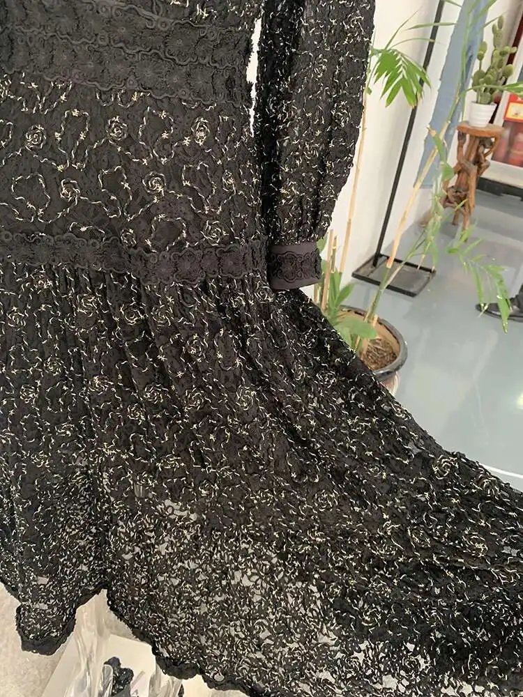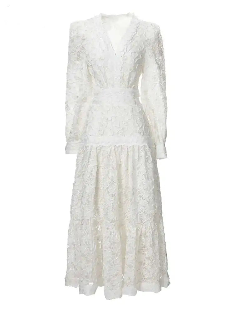 Lunivop Luxury Hollow Out Print Spliced Design Long Sleeve Dresses For Women V-neck Lace Loose Dress Spring Clothing