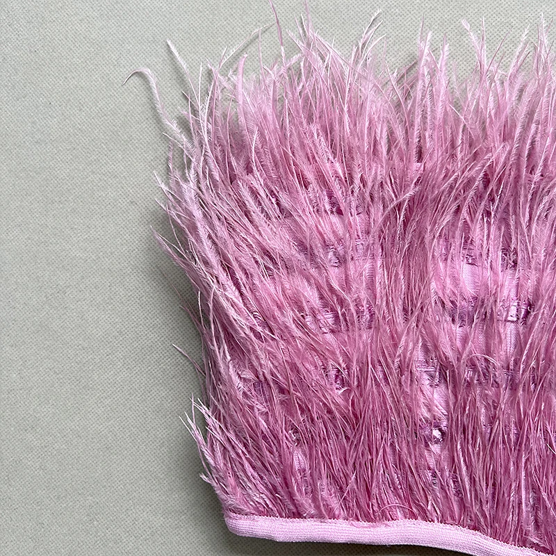 Lunivop Luxury Women Summer Sexy Strapless Backless Feather Pink Mesh Sequins Bodycon Skirt Set