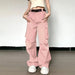 Lunivop Lygens Zipper Pockets High Waist Solid Y2K Streetwear Wide Leg Women'S Cargo Pants Casual Daily Vacation