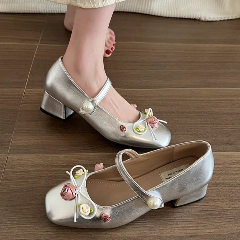 Lunivop Medium Heeled Mary Jane Single Shoes New Women Shoes Fashion Elegant Flower Bow Pumps Square Toe Thick Heeled Ballet Shoes