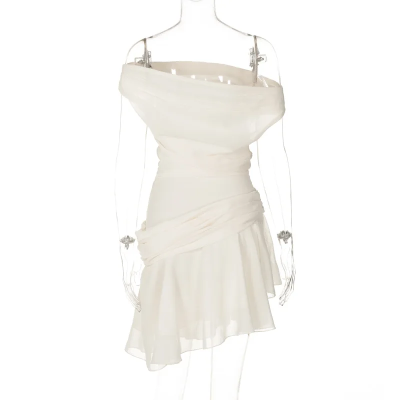 Lunivop Mesh Off The Shoulder Ruffles Short Women'S Dressess Summer Y2K Streetwear Casual Outfit Elegant Evening Party Clothes