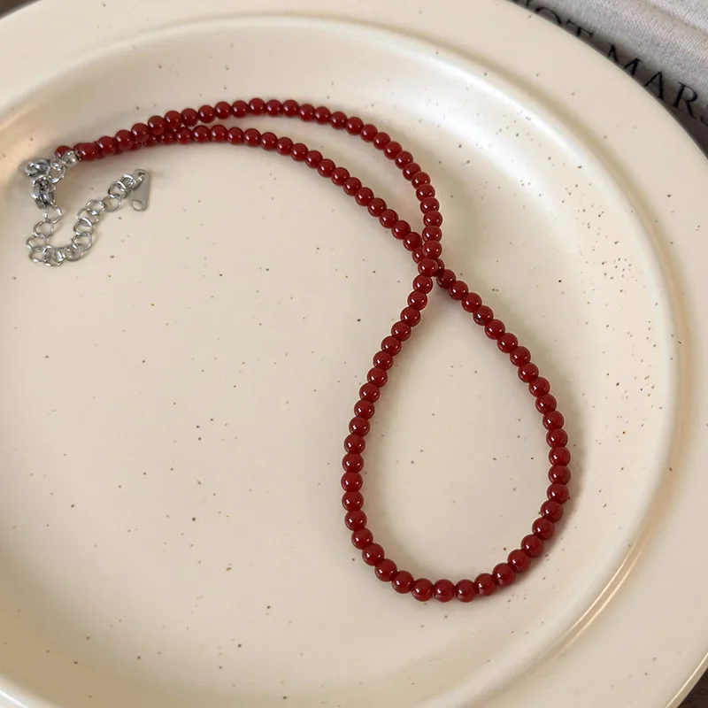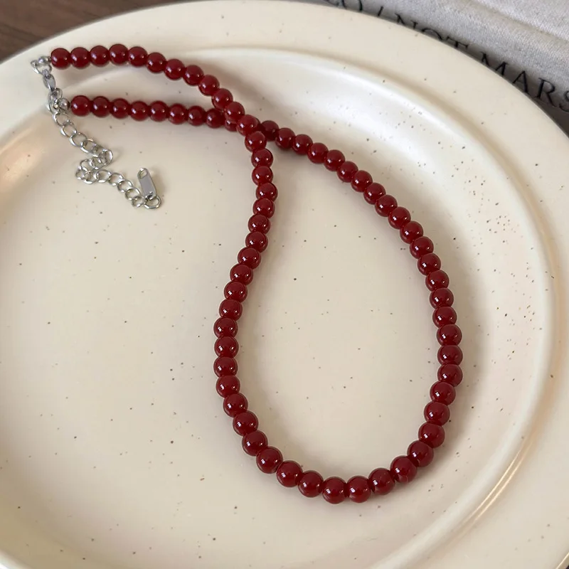 Lunivop New Arrival 4 6 8mm Round Glass Beads Strand Beaded Necklace for Women Wholesale Silver Plated Alloy Chain Chokers