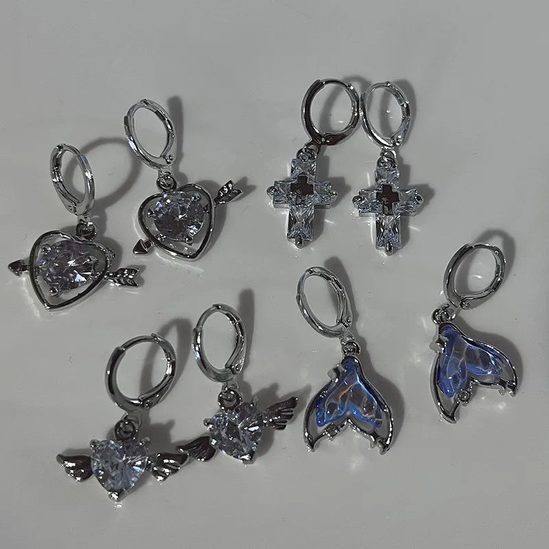 Lunivop New Arrival Women\'s Luxury Cubic Zirconia Dangle Drop Cross Hoop Earrings Banquet Jewelry