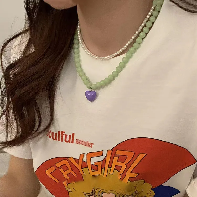 Lunivop New Color Beaded Chain Resin Heart Pendant Necklace For Women Girls Trendy Clavicle Chain Delicate Jewelry Gift
