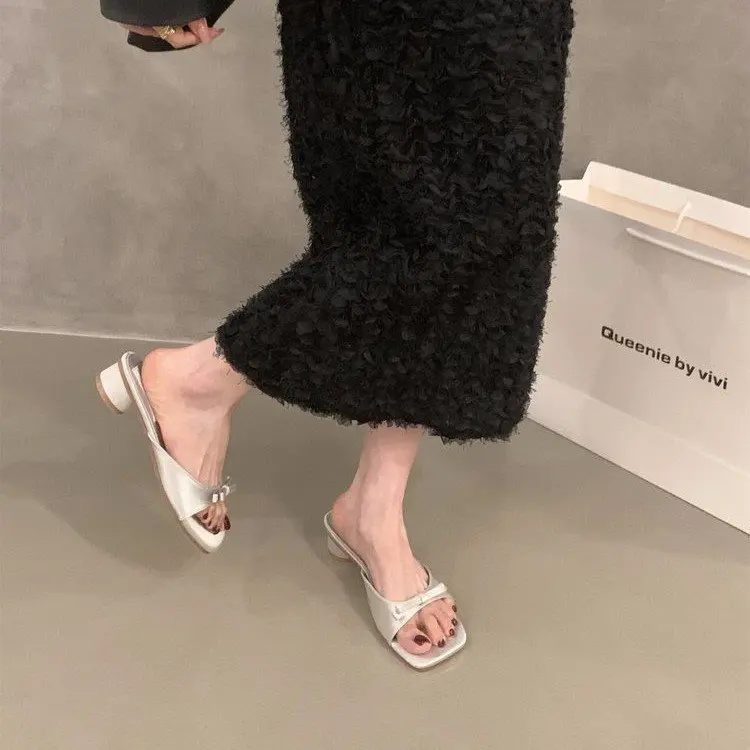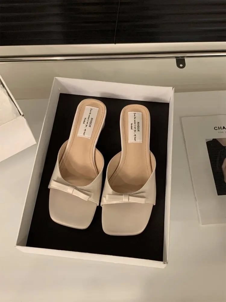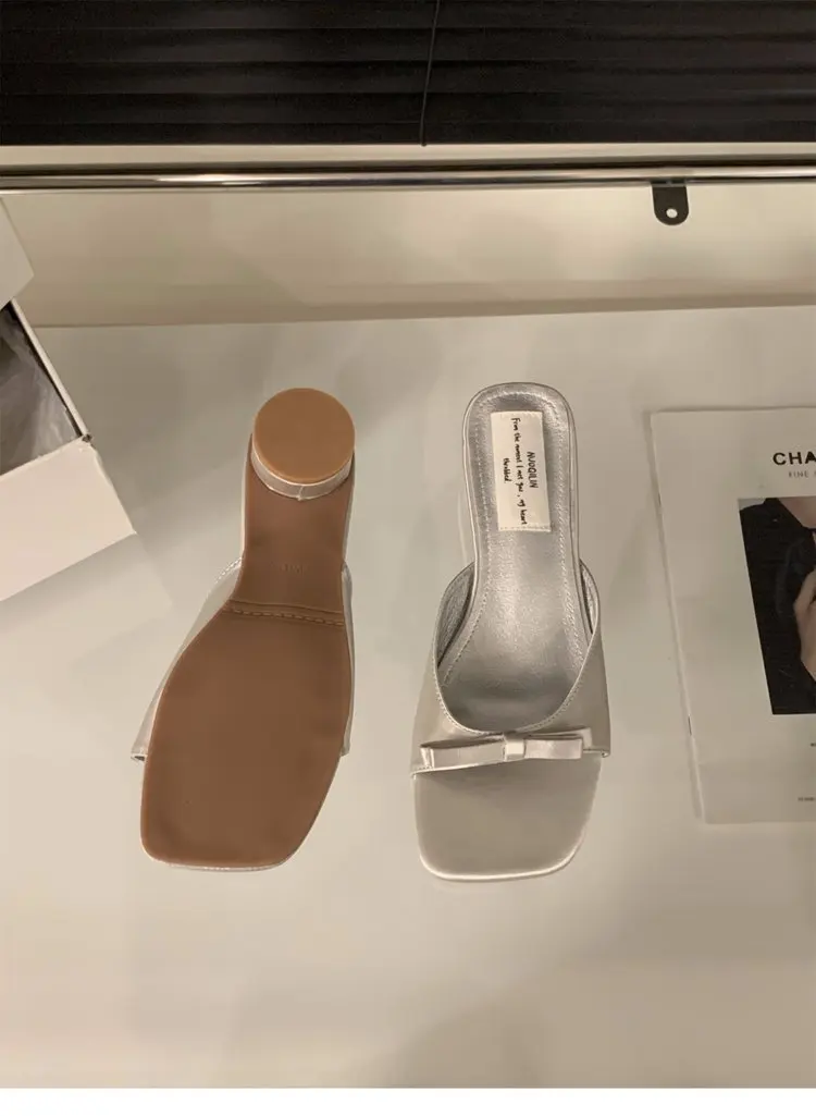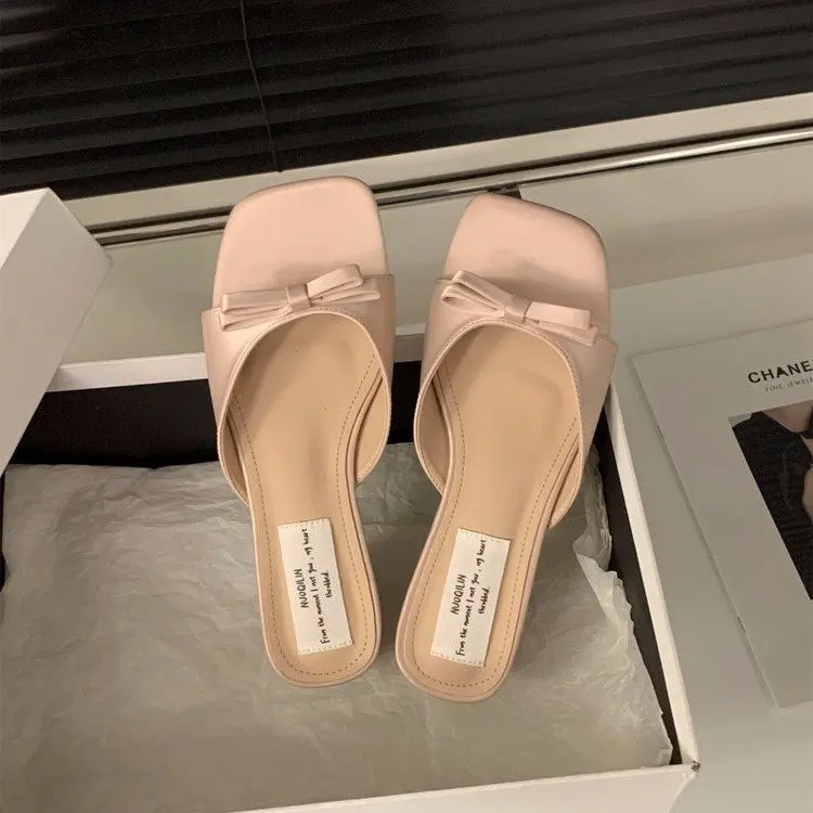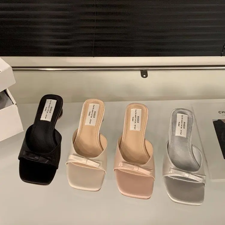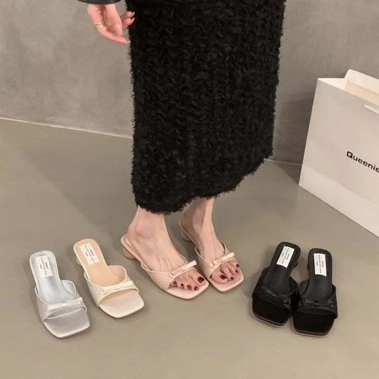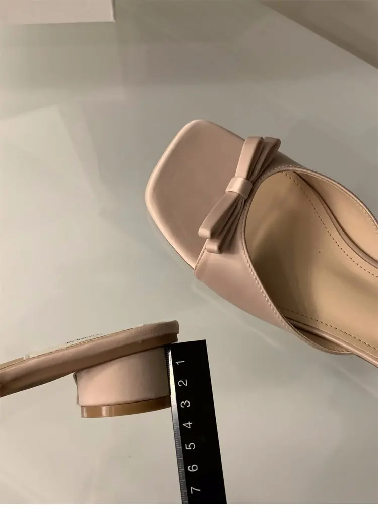 Lunivop New Design Bowknot Square Toe Women Sandals Sexy Slip on Thick Heels Slippers Banquet Prom Mule Slippers Shoes Zapatos De Mujer