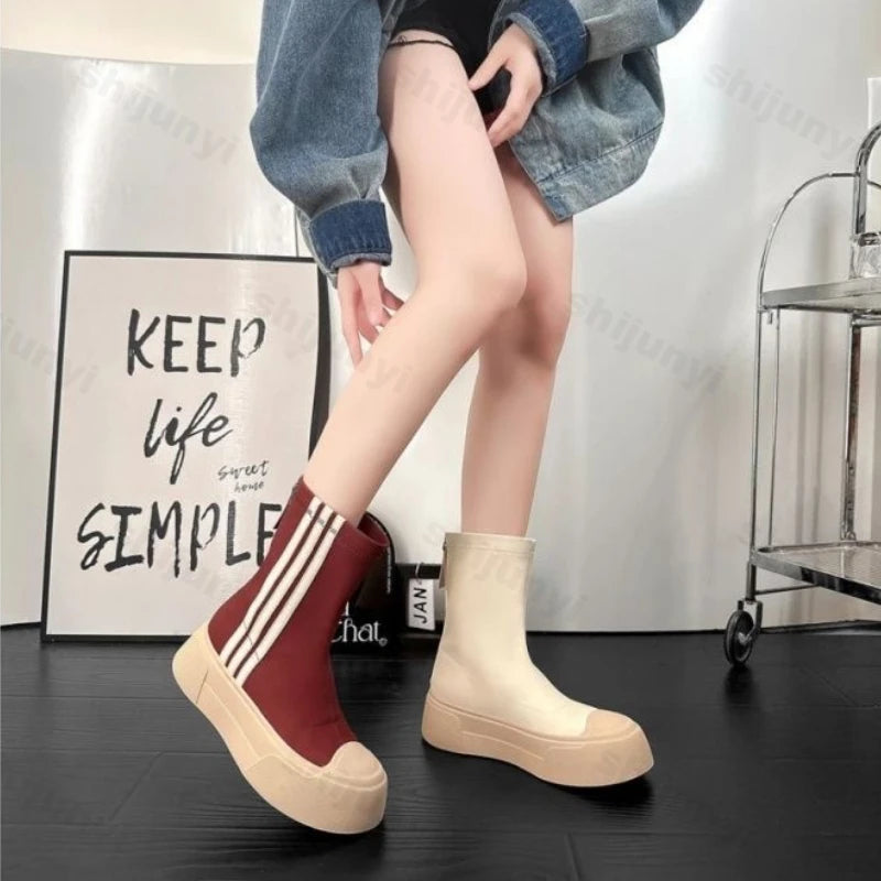 Lunivop New Designer Women's Elastic Boots Zip Shoe Comfort Women Shoes Platform High-top Female Sneakers Thick Sole Mid-calf Boots