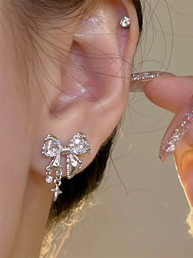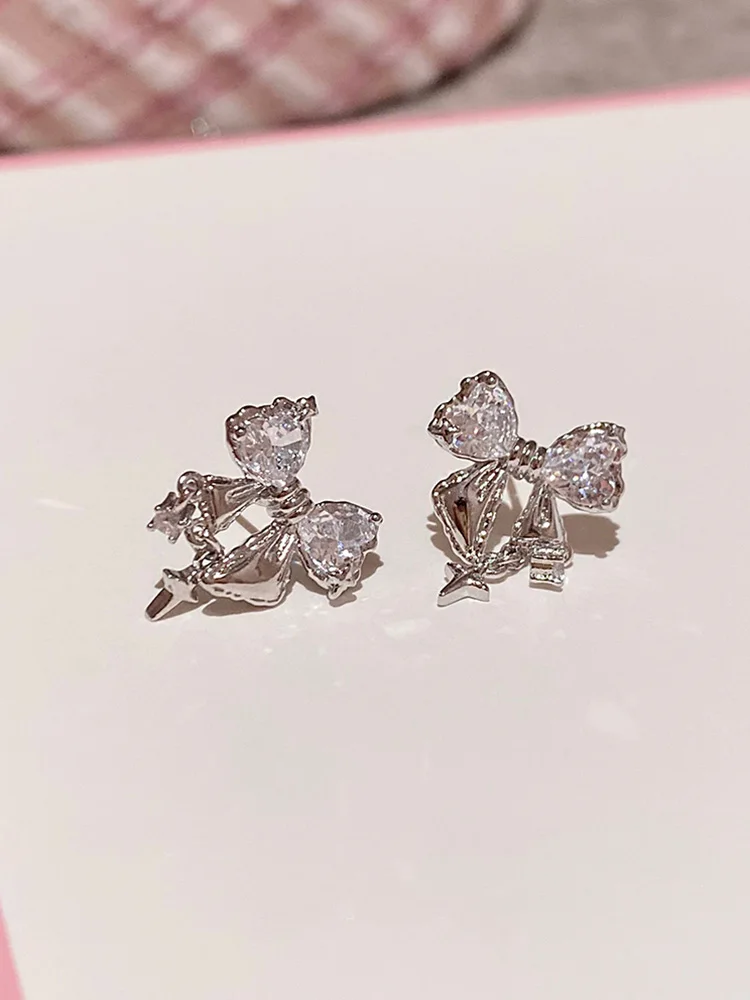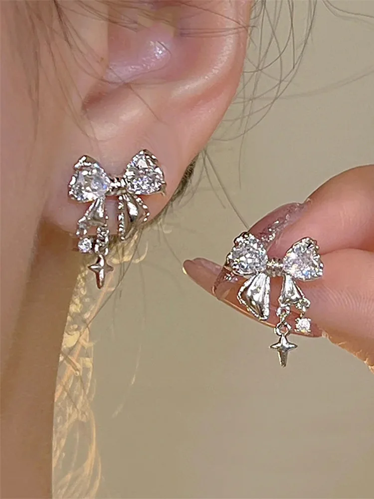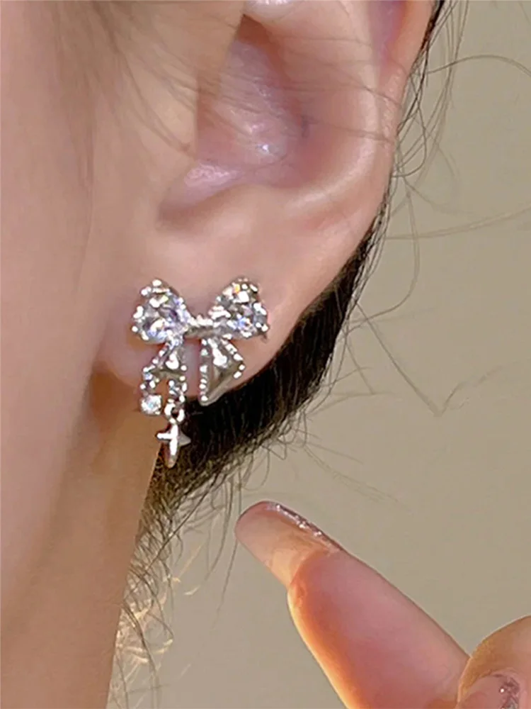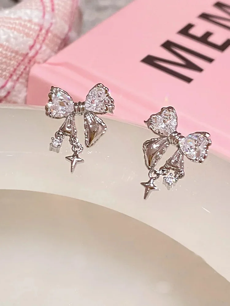 Lunivop New Fashion Bling White Pink Ziircon Bow Earrings for Women High-end S925 Silver Needle Studs Sweet Elegant Party Jewelry Gifts