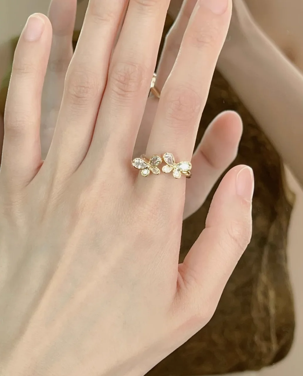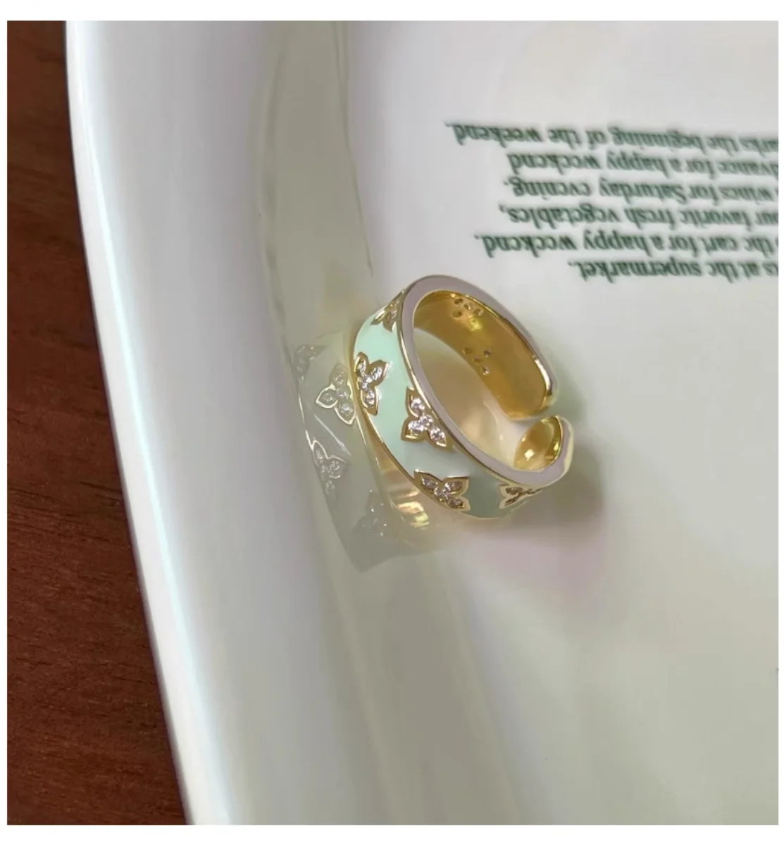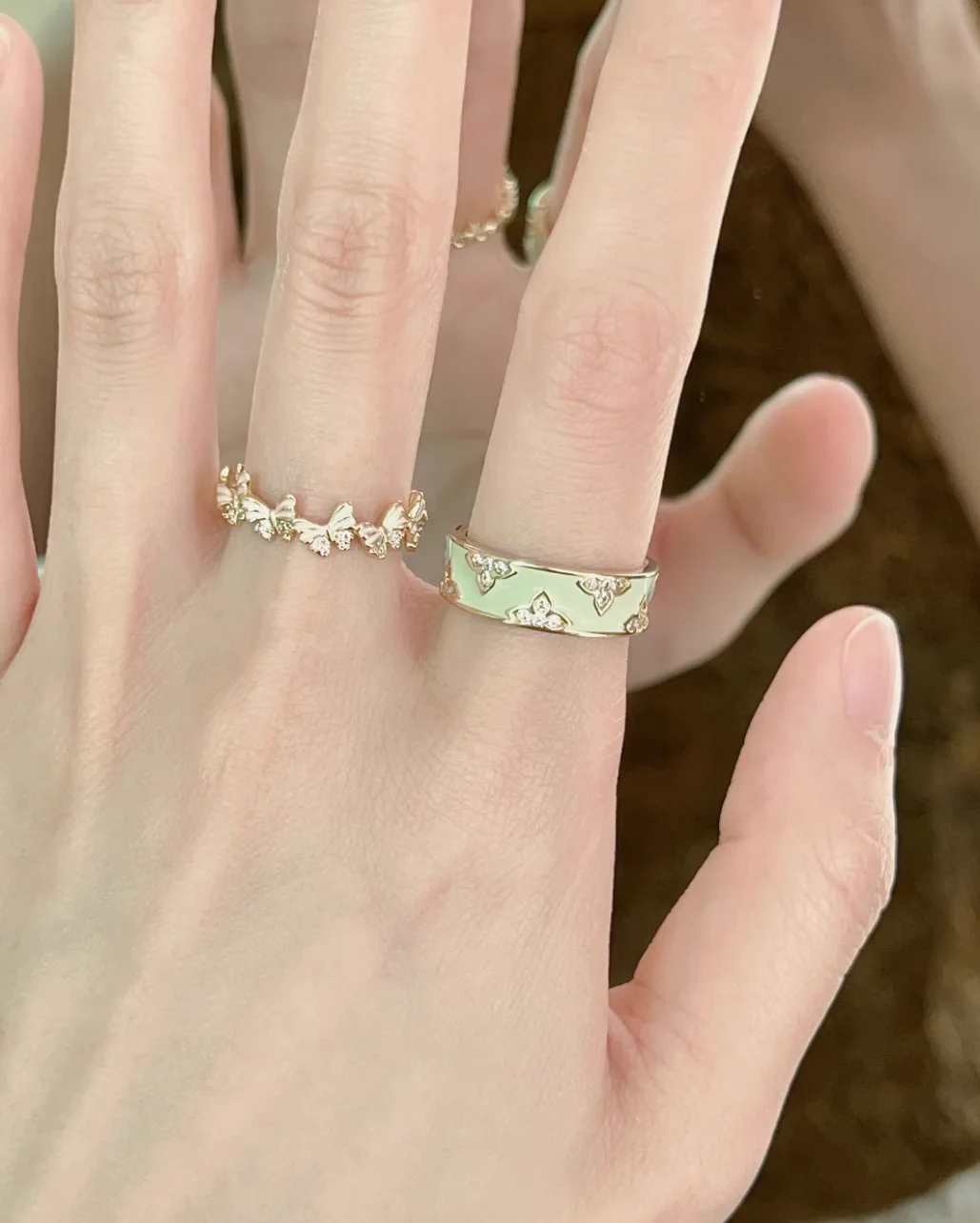 Lunivop New Fashion Classic zirconia Enamel Butterfly Clover Ring for Women Open Adjustable Finger Rings Party Jewelry Gift