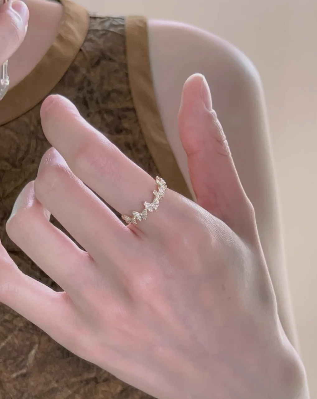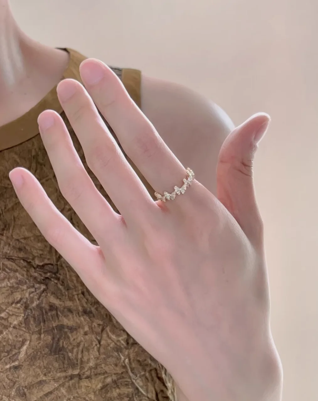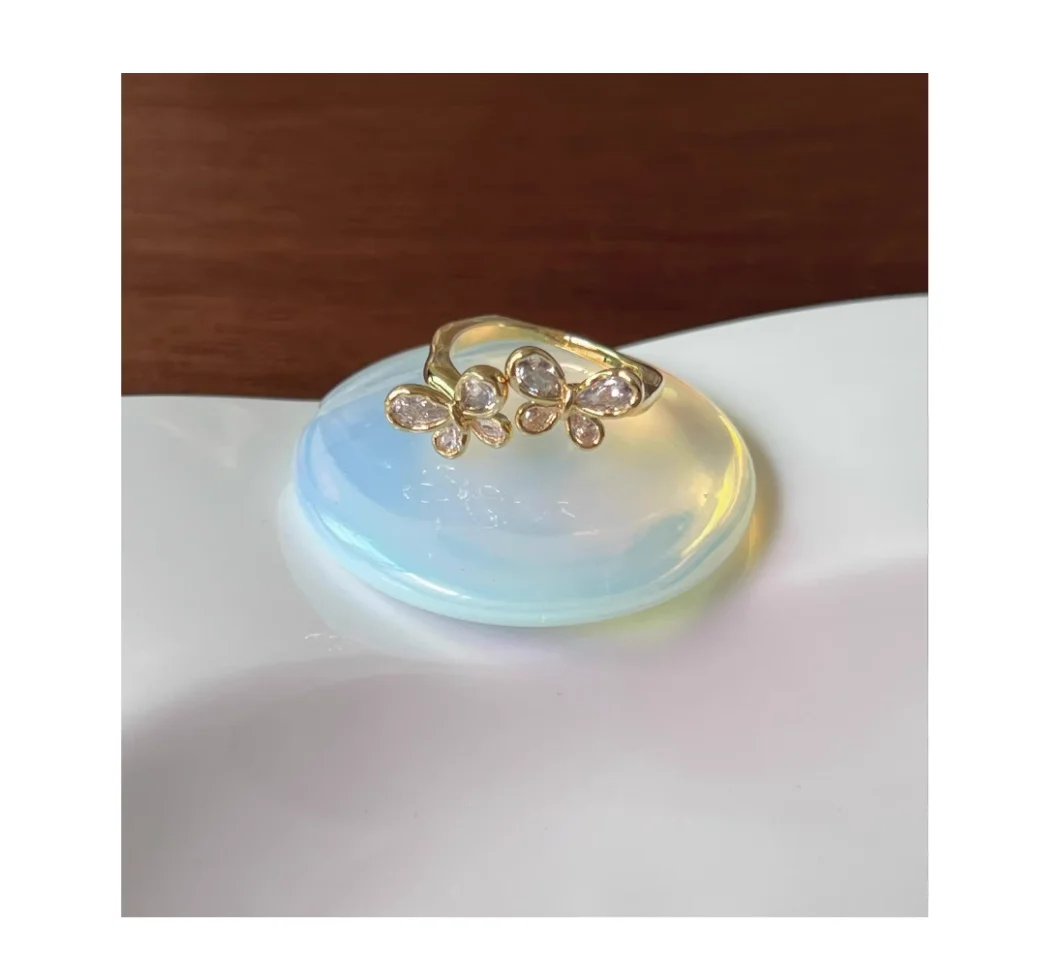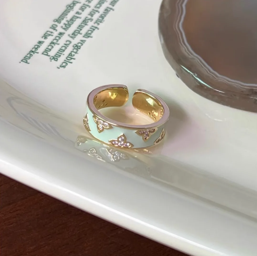 Lunivop New Fashion Classic zirconia Enamel Butterfly Clover Ring for Women Open Adjustable Finger Rings Party Jewelry Gift